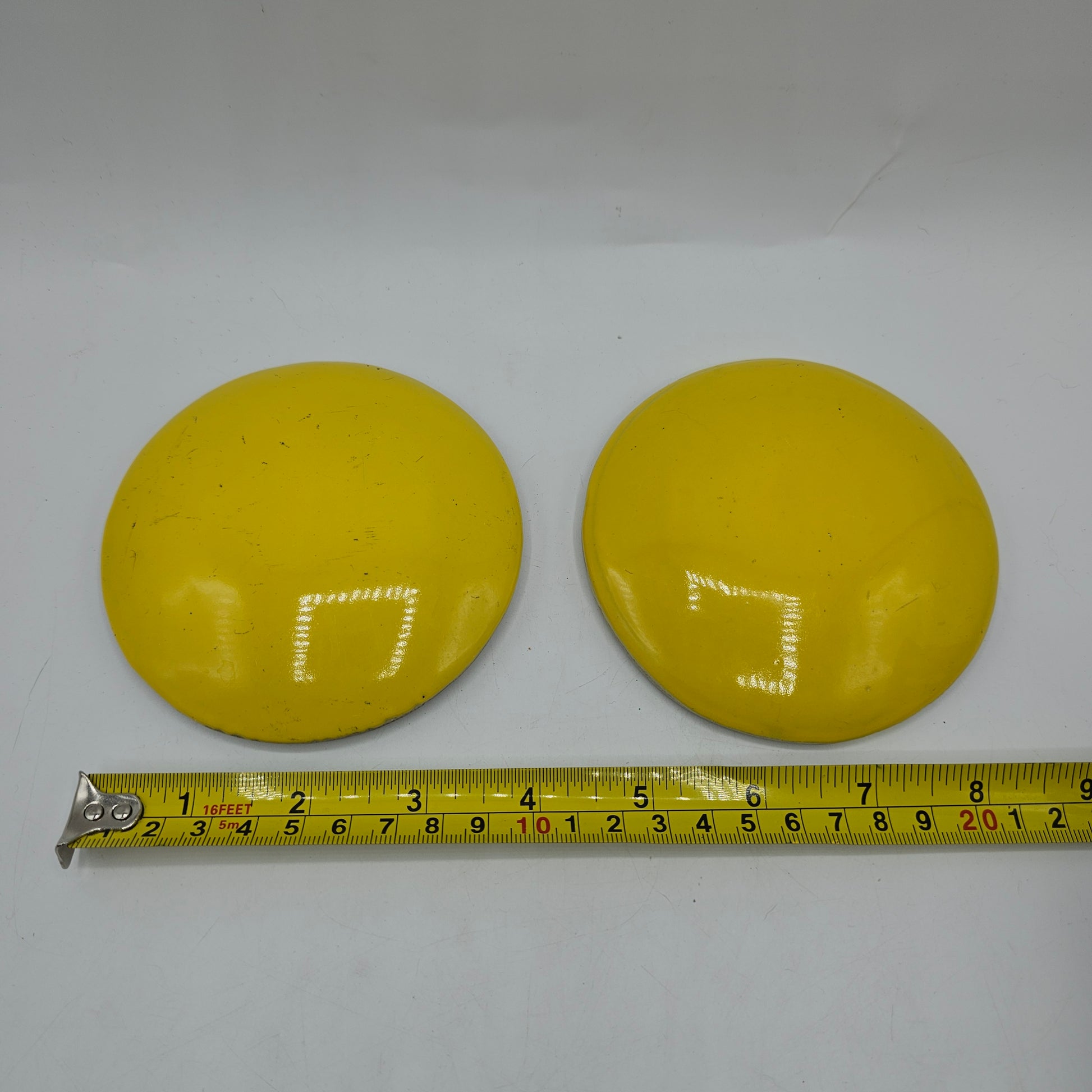 2 Yellow "Cats Eye" Ceramic Road Reflecters - 4" diameter