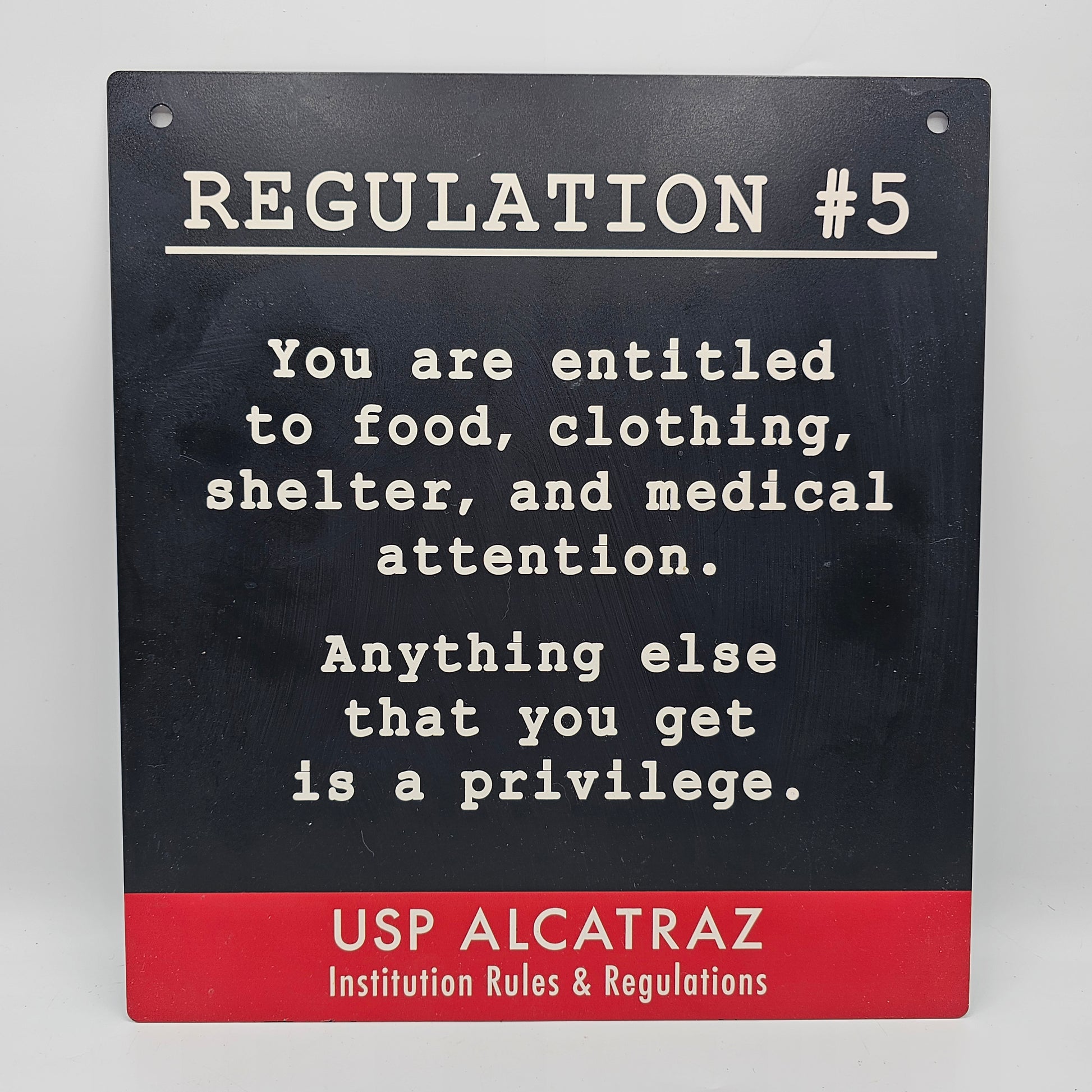 Alcatraz Regulation #5 Metal Plaque / Wall Sign