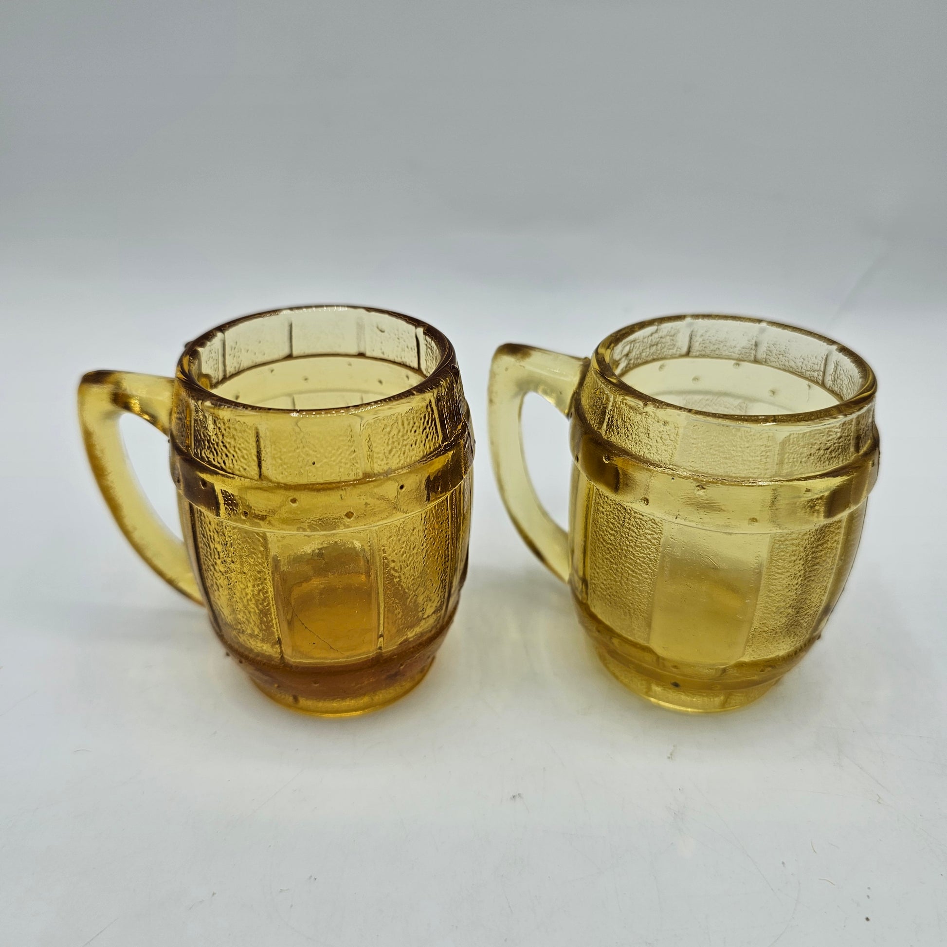 Amber Federal Glass Barrel Shot Glasses / Toothpick Holders - Set of 2