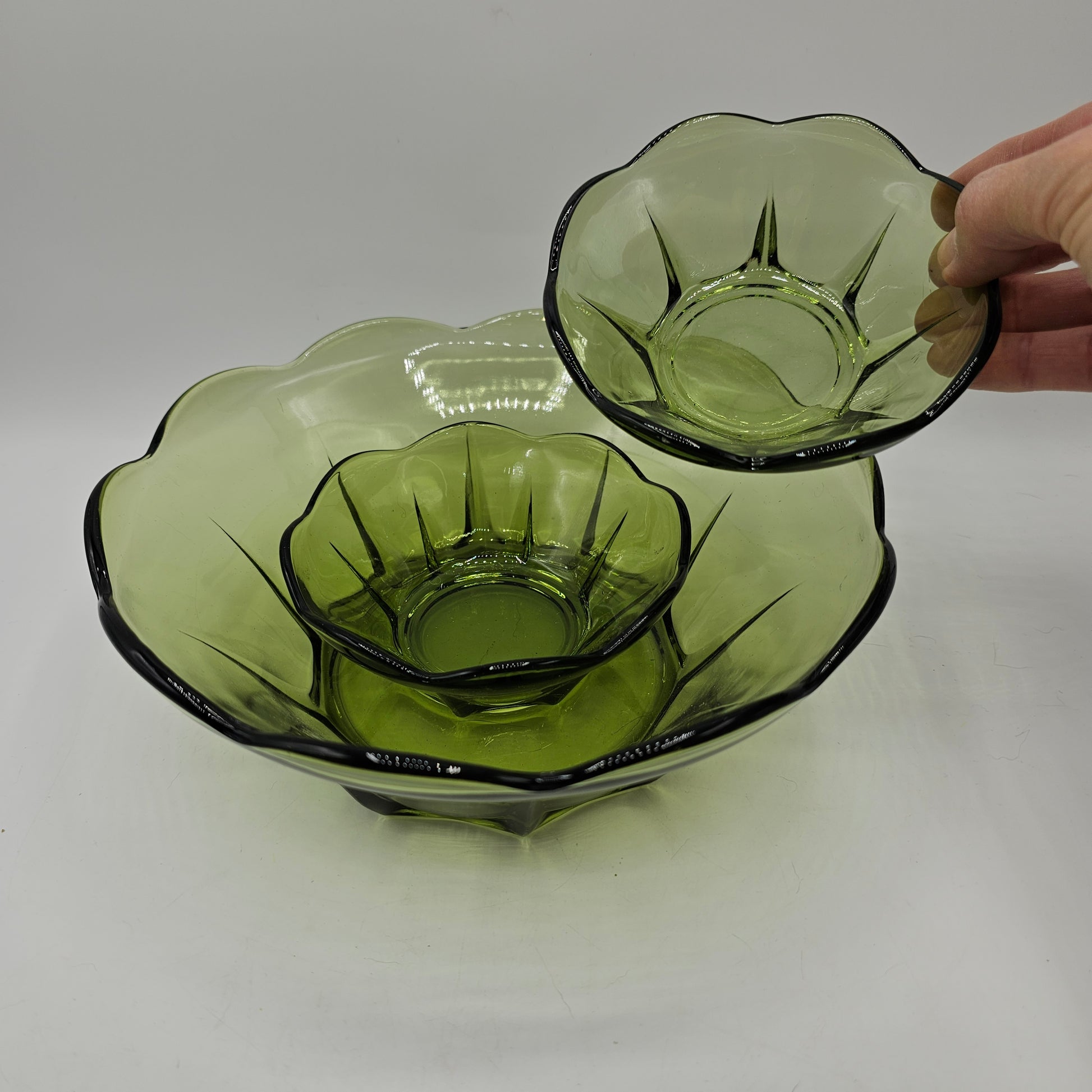 Amber Hocking Green Glass Bowl Set - 1 Large, 2 Small