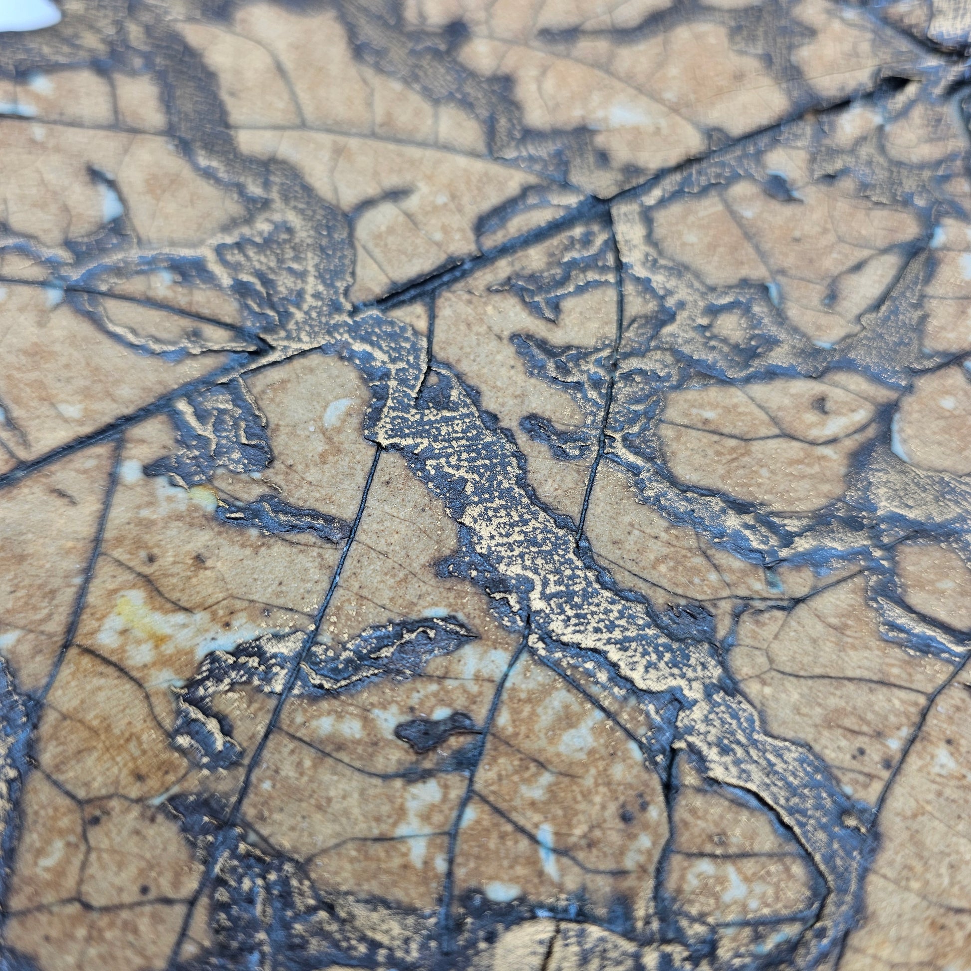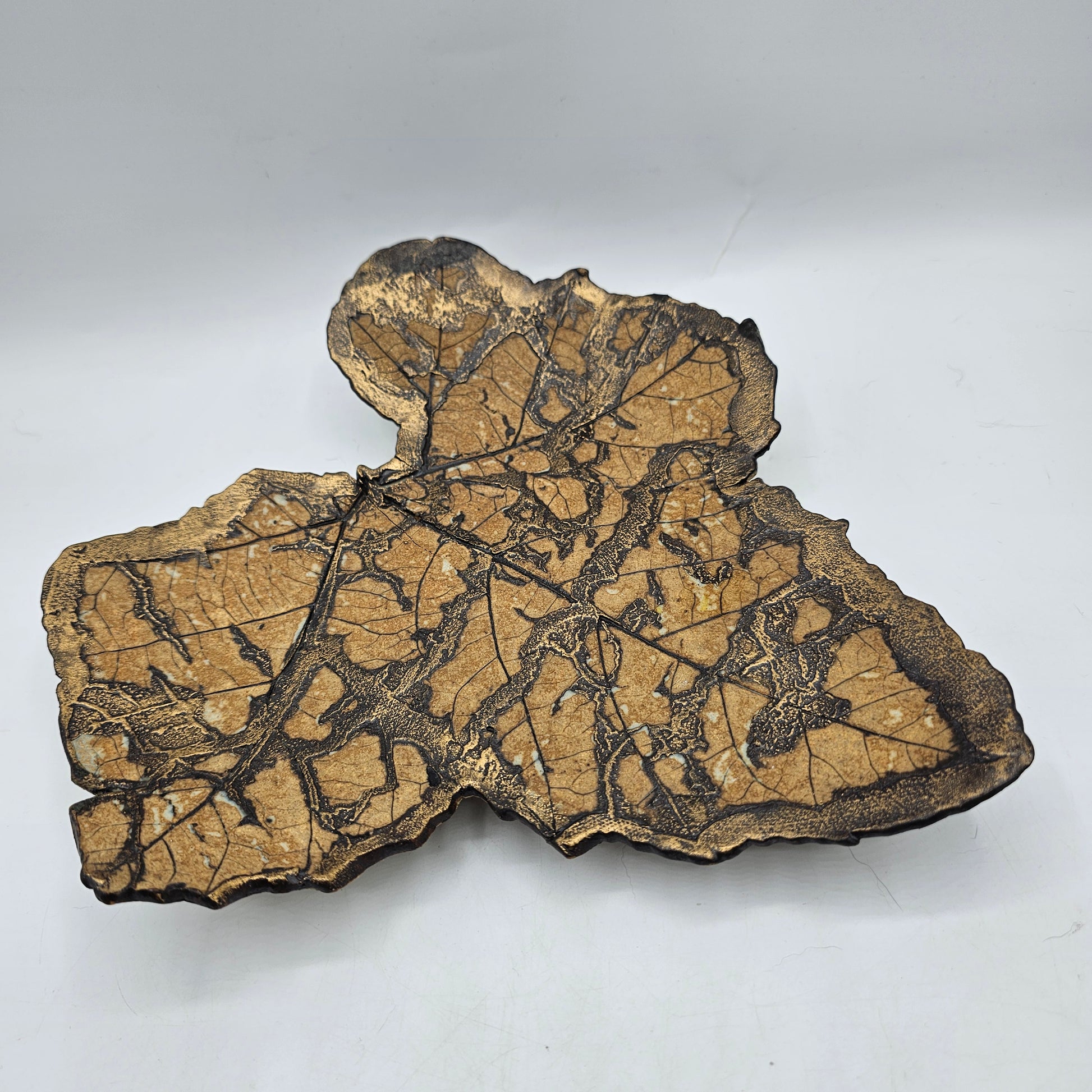 Art Pottery Leaf Tray with Gold Gilt - Artisan Signed