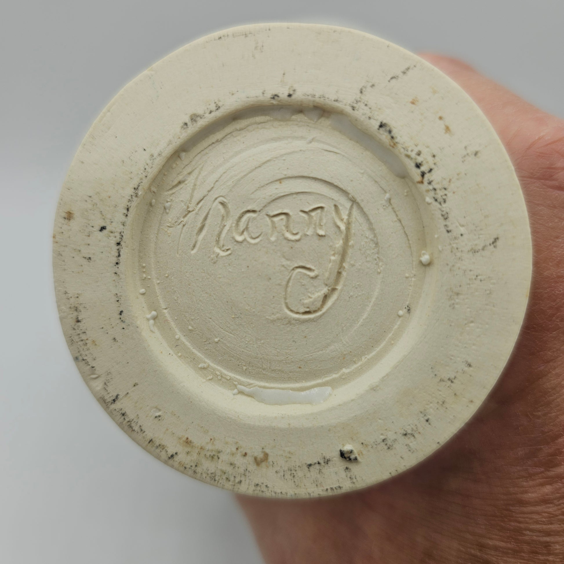 Artisan Pottery Black and White Swirled Case Vase Signed "Franny"
