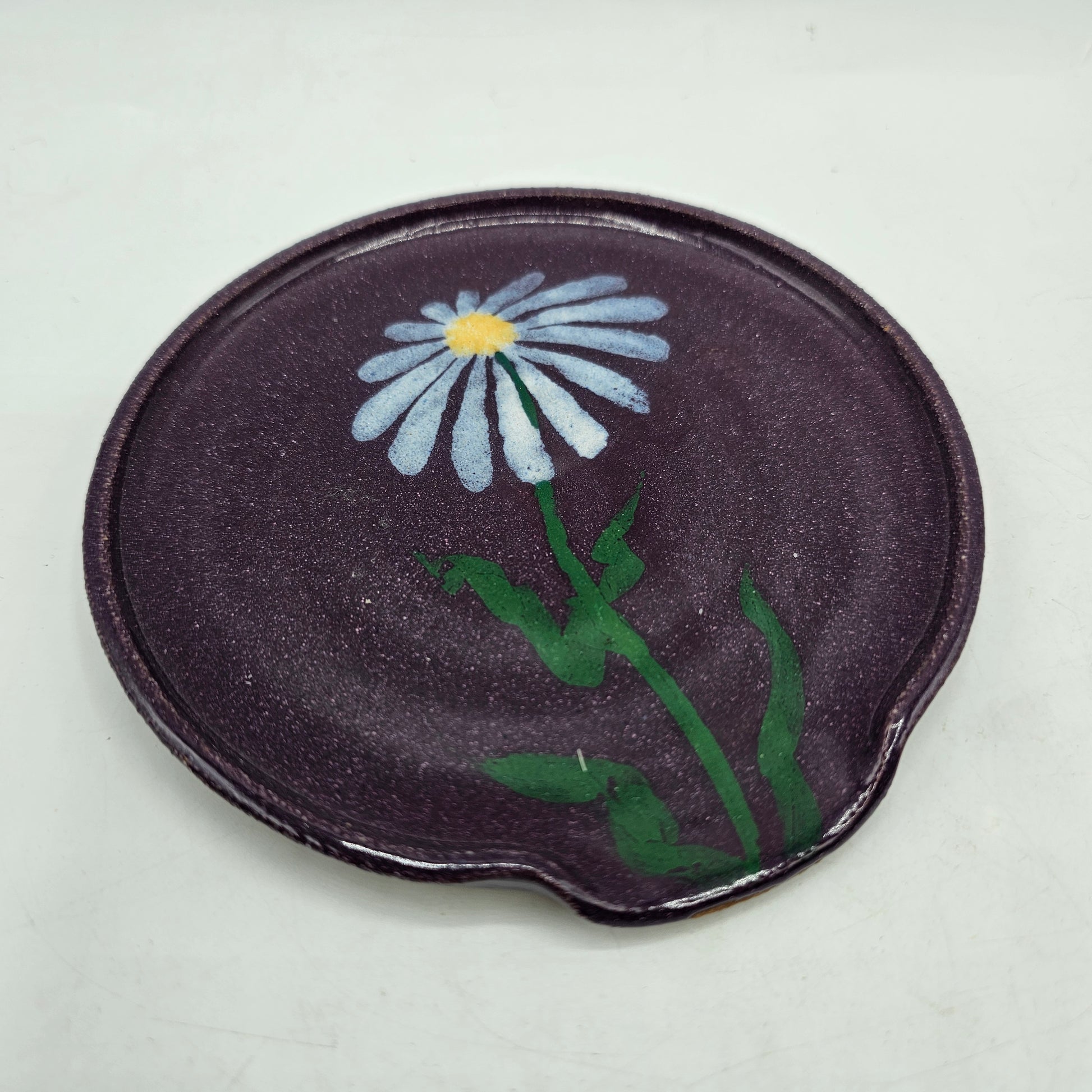 Artisan Pottery Spoon Rest /Sponge or Soap Dish - Purple with Daisy Flower