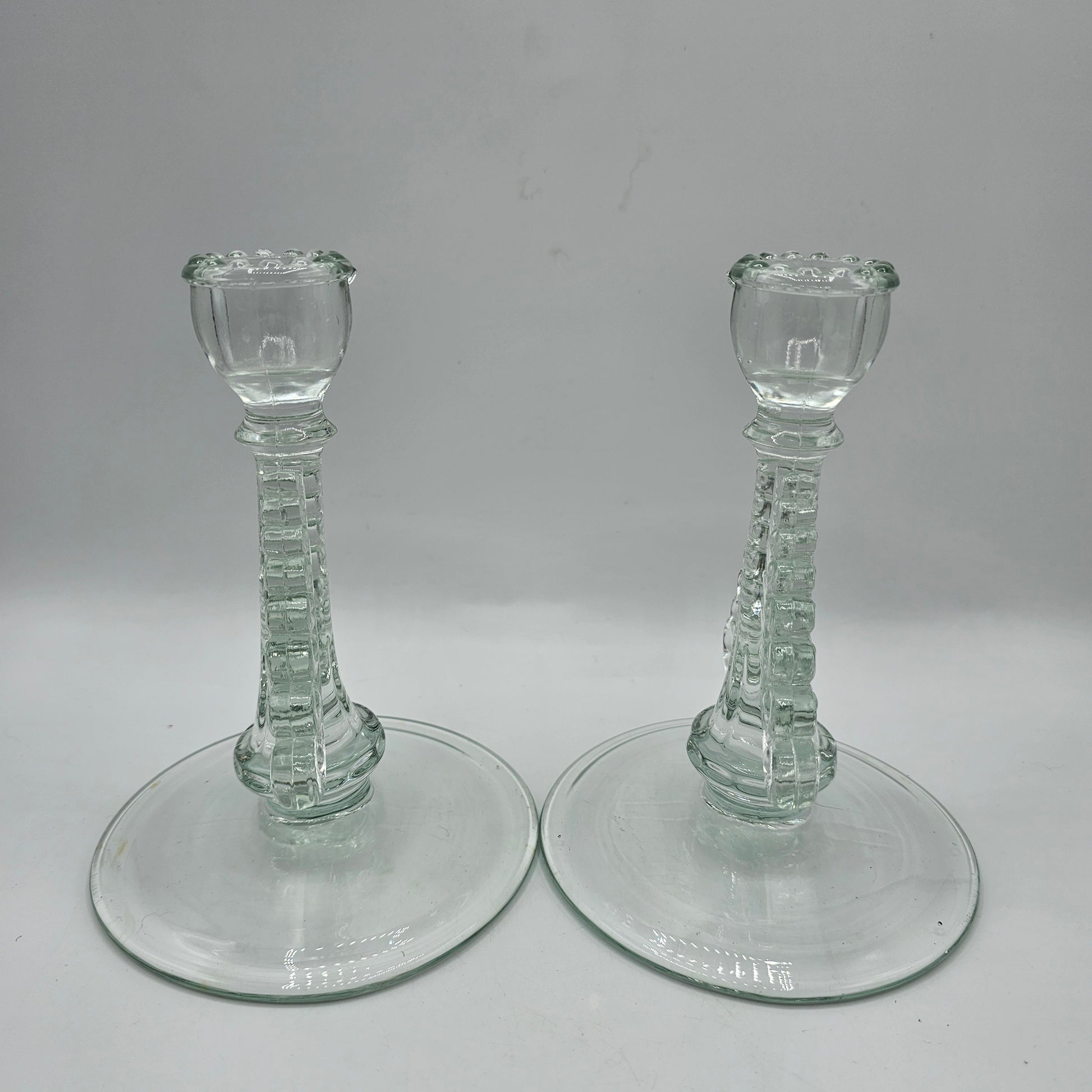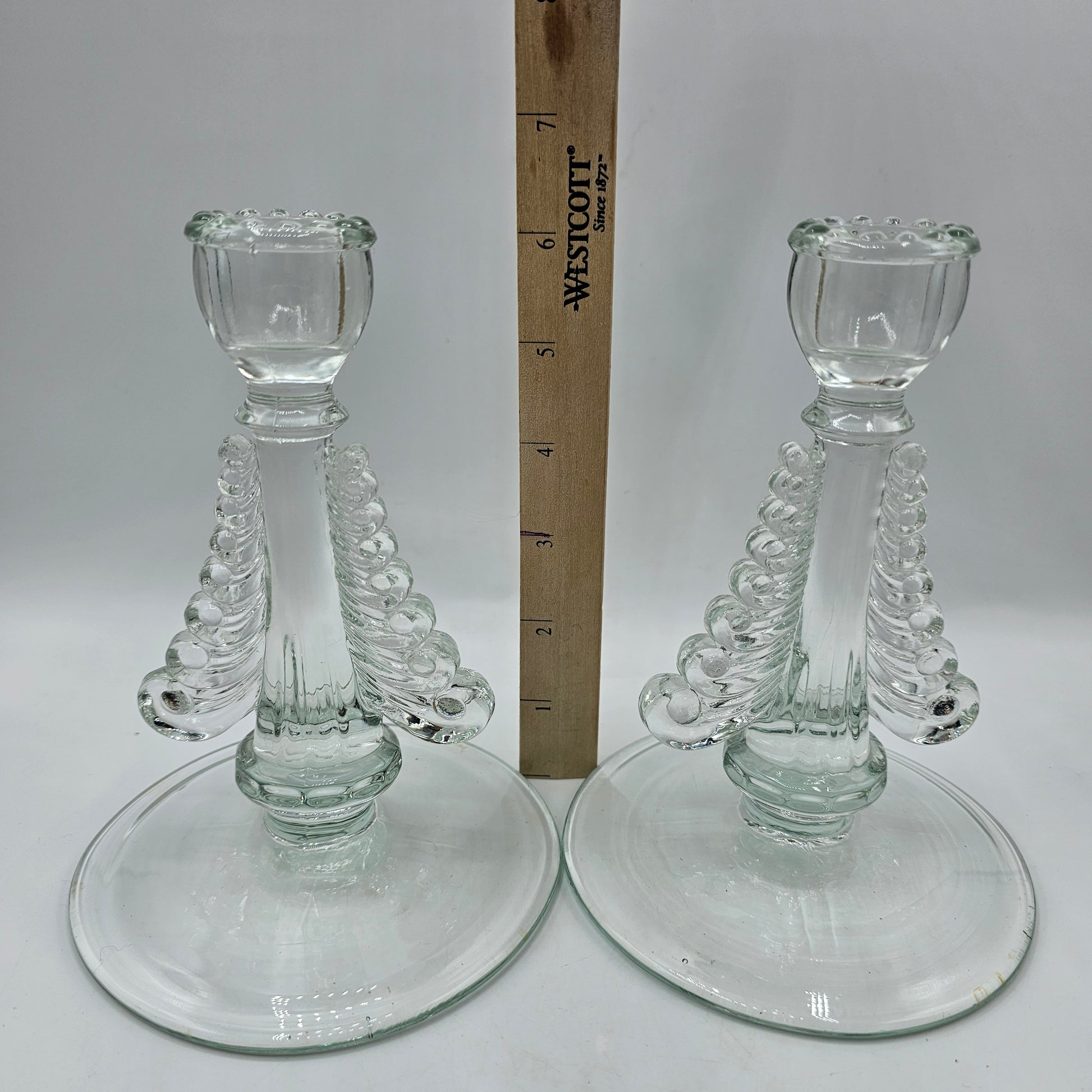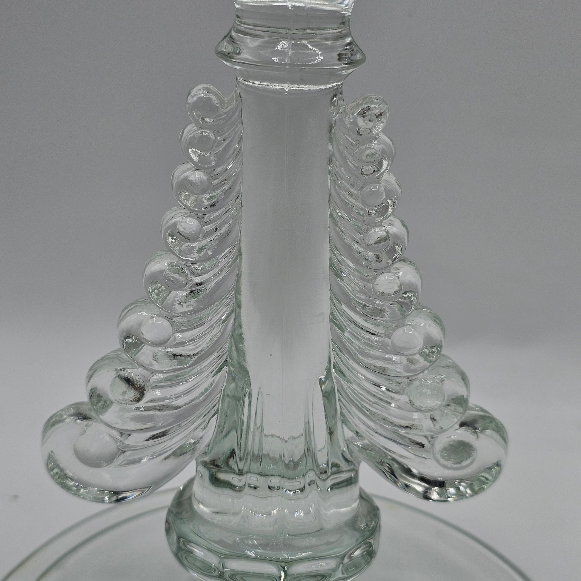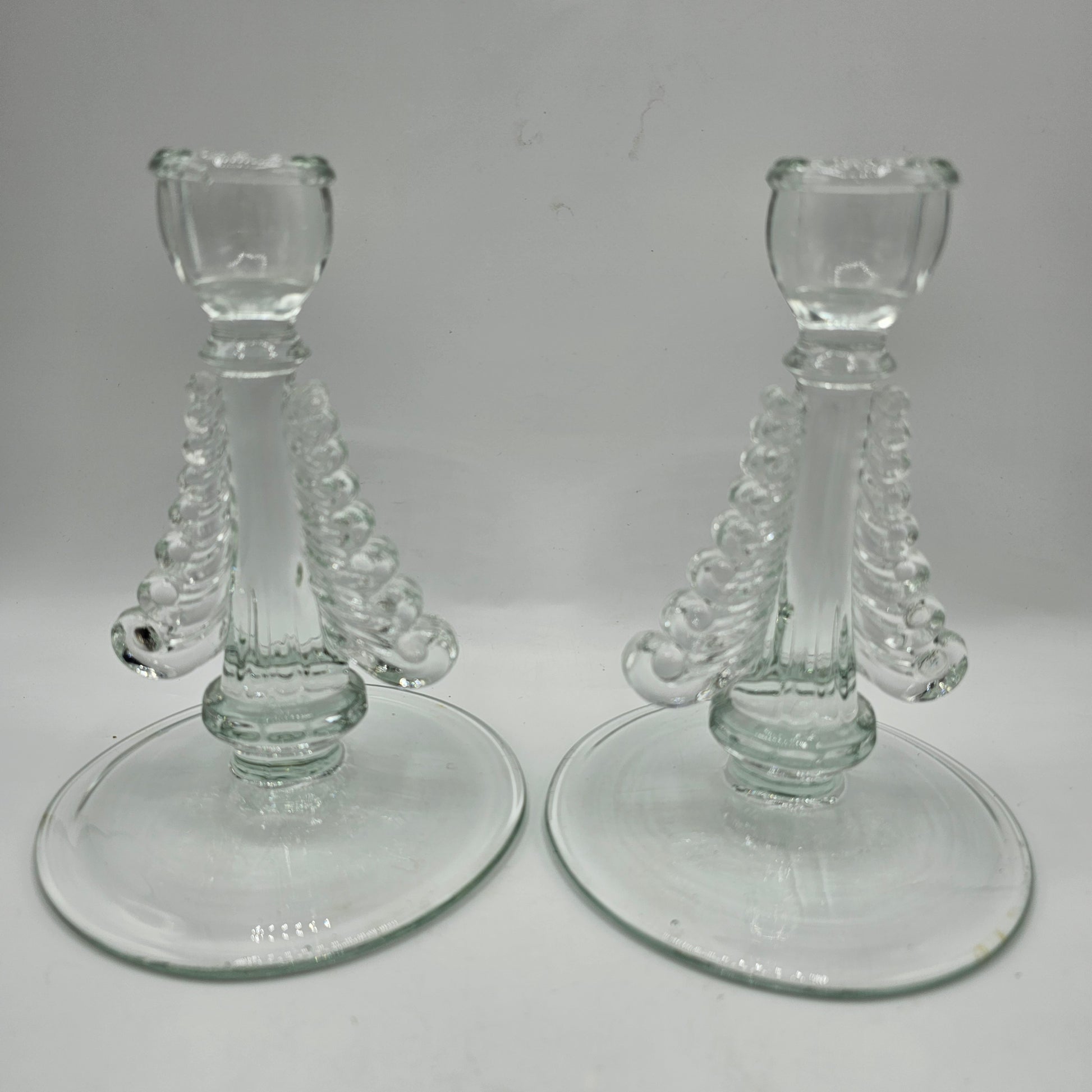 Baroque Style Scrolled Glass Taper Candlestick Pair