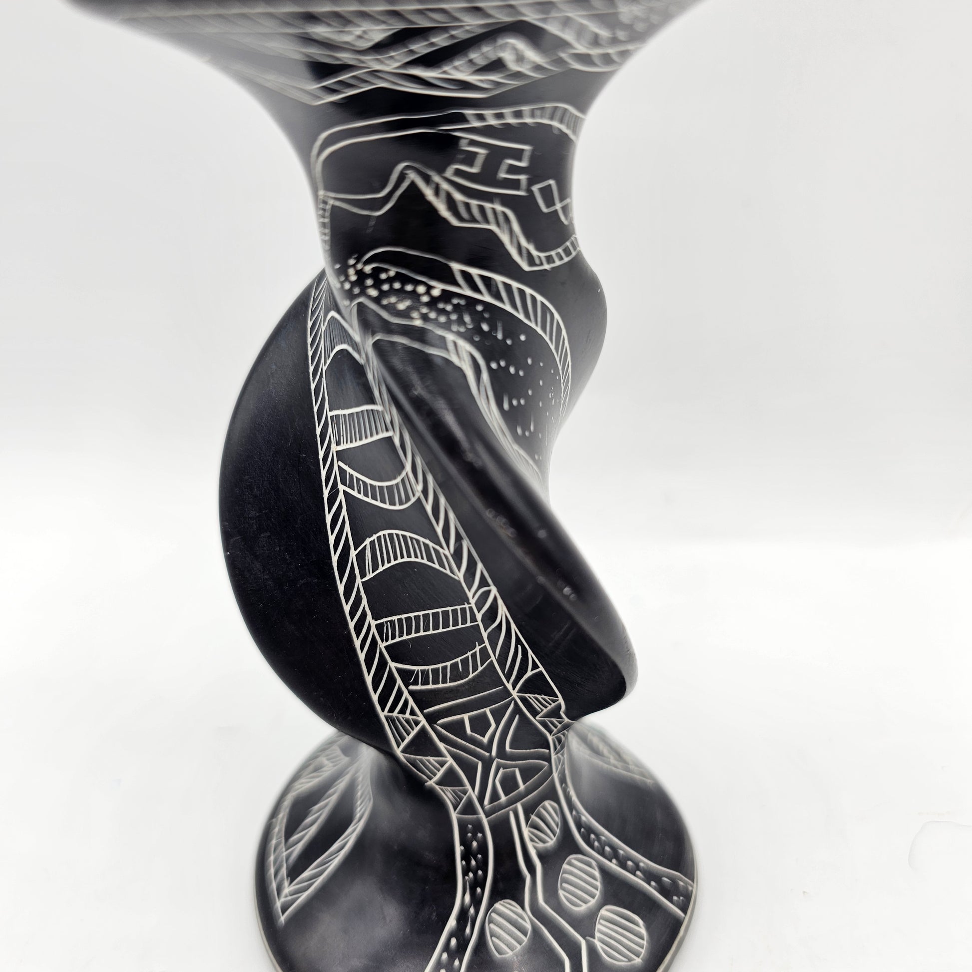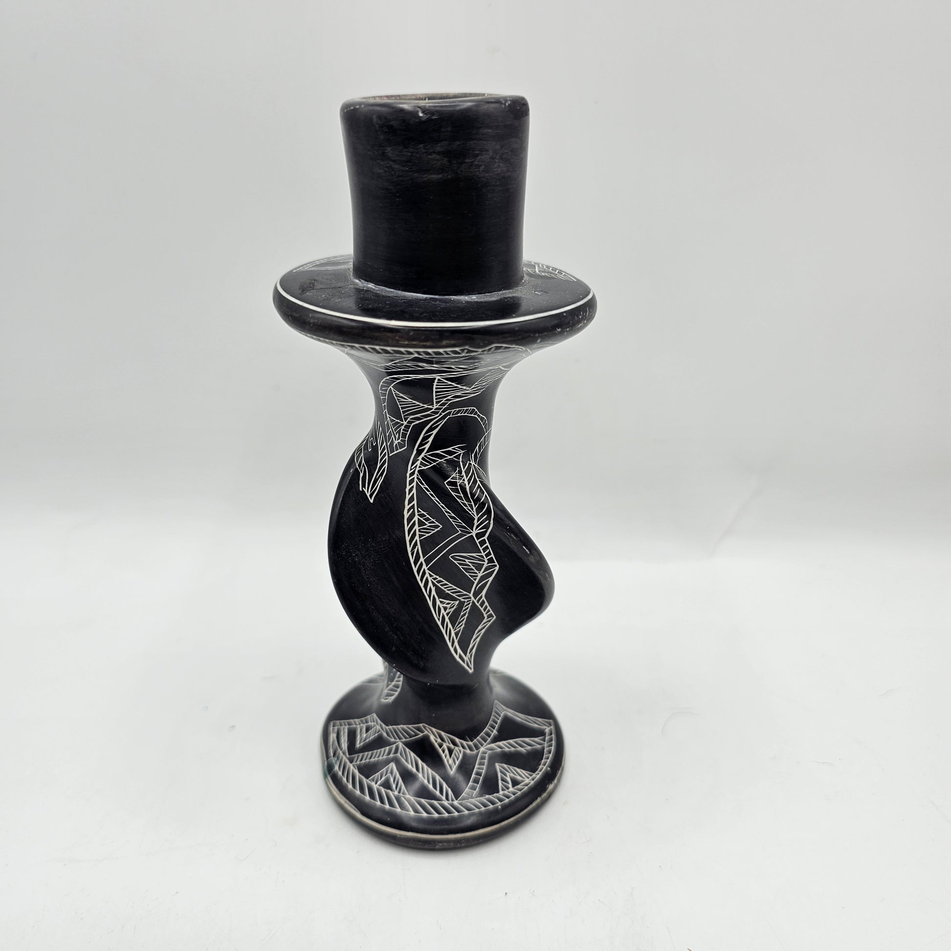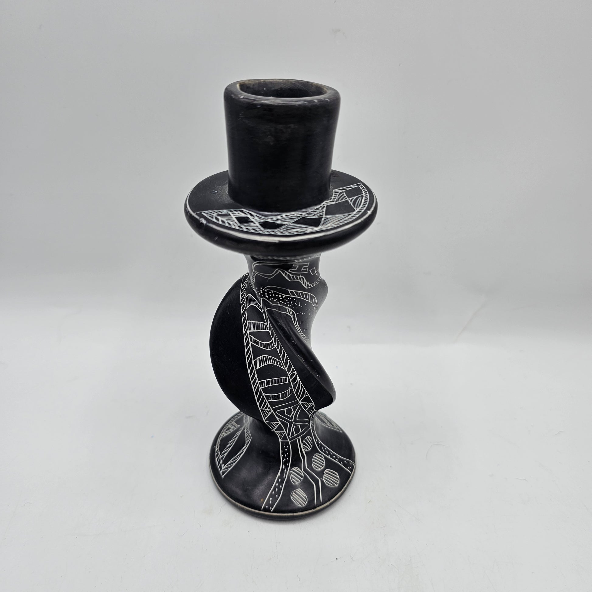 Expertly crafted from beautiful black etched soapstone, this taper candlestick will add a touch of elegance to any space. Its smooth finish and intricate design make it a perfect addition to any home decor. Get ready to elevate your candle game with this stunning piece.