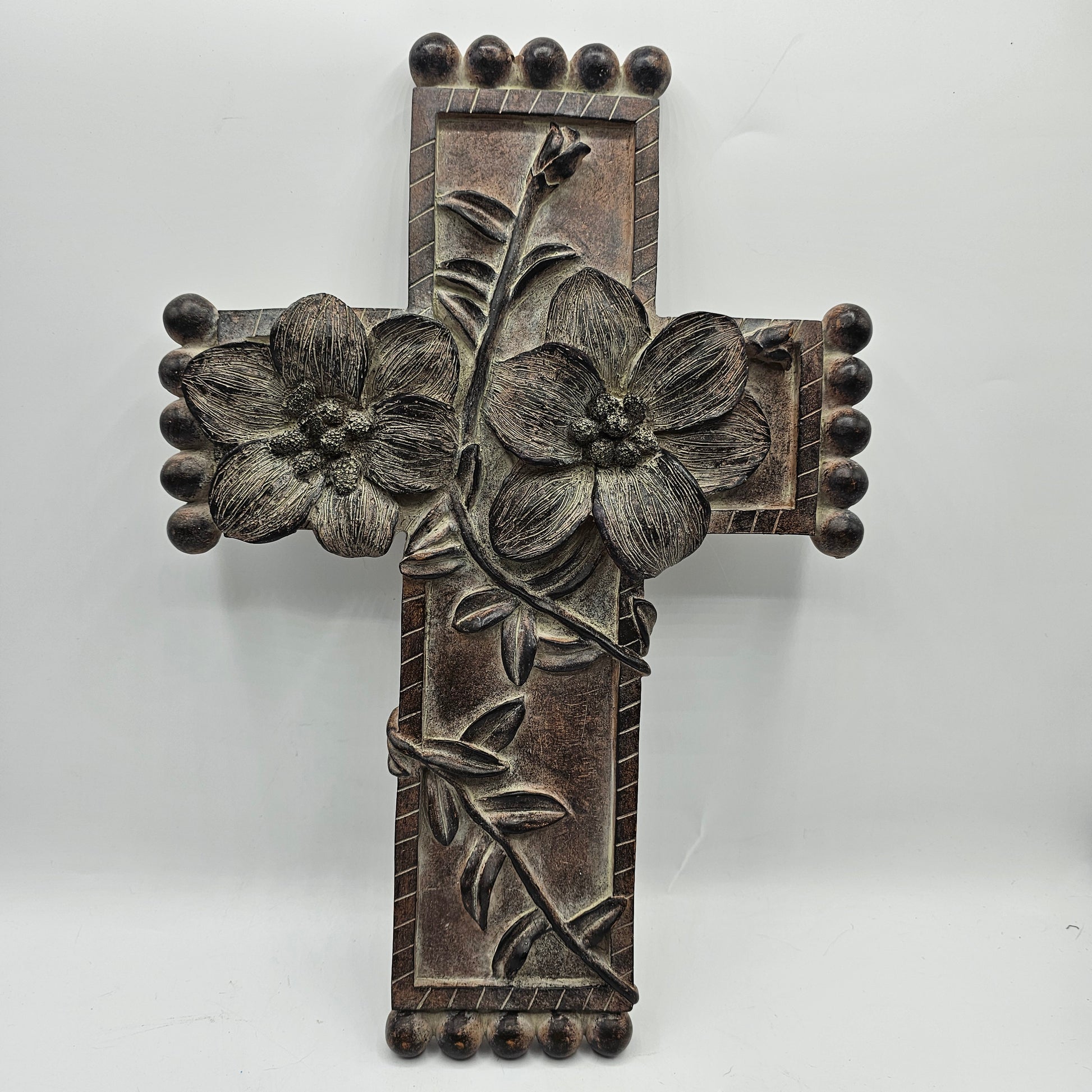 This Black Resin Floral Wall Cross features a beautiful design and durable construction. Crafted from high-quality resin, it adds an elegant touch to any room. Perfect for displaying in your home, church, or as a gift for someone special. Enhance your decor with this stunning and timeless piece.