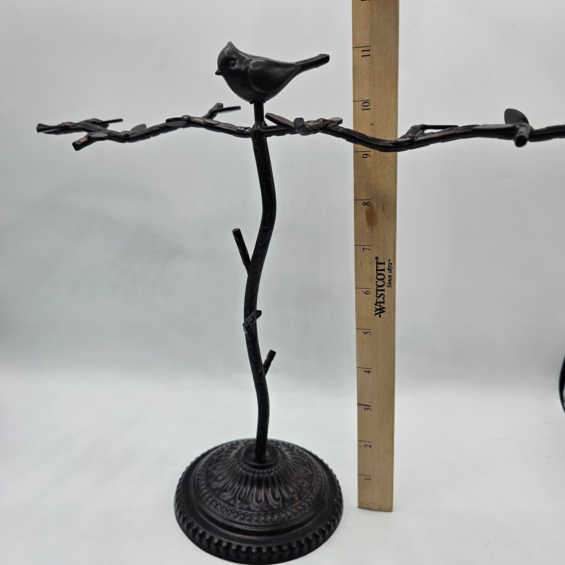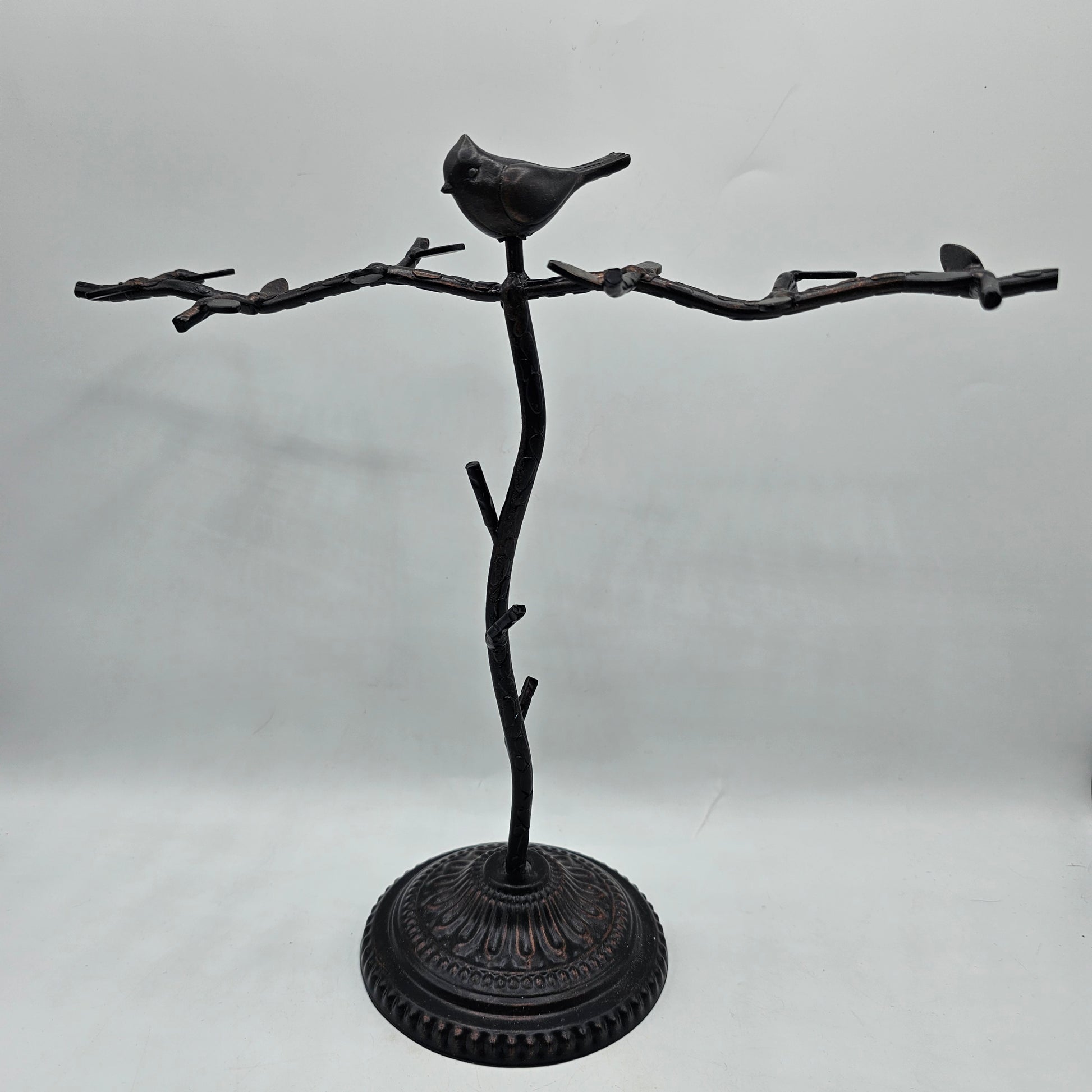 This Bronze Tone Metal Jewelry Tree with Bird is both functional and decorative, making it a must-have for any jewelry lover. The sturdy metal construction allows for multiple pieces to be displayed and organized, while the bird accent adds a charming touch to any room. Elevate your jewelry storage with this elegant and practical jewelry tree.