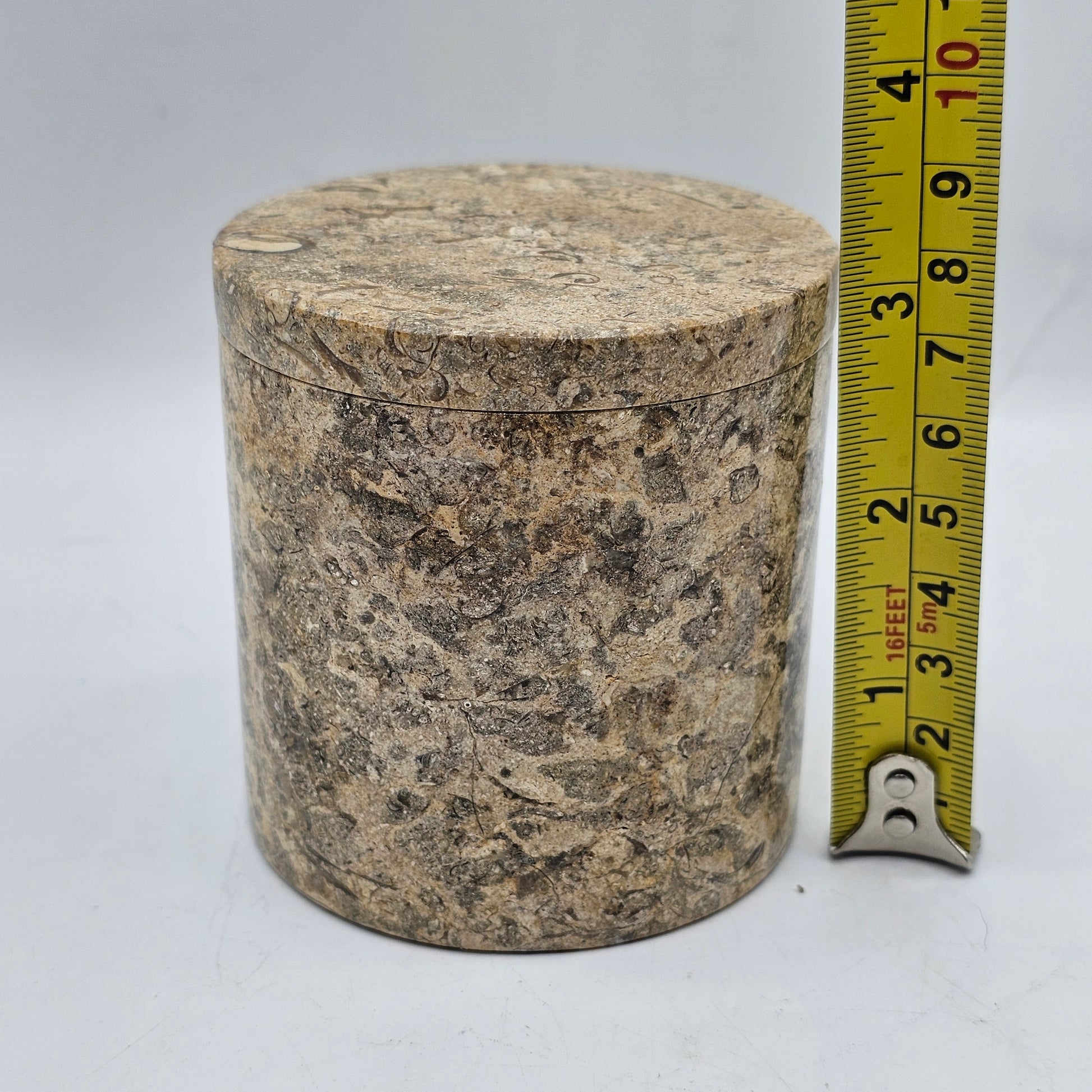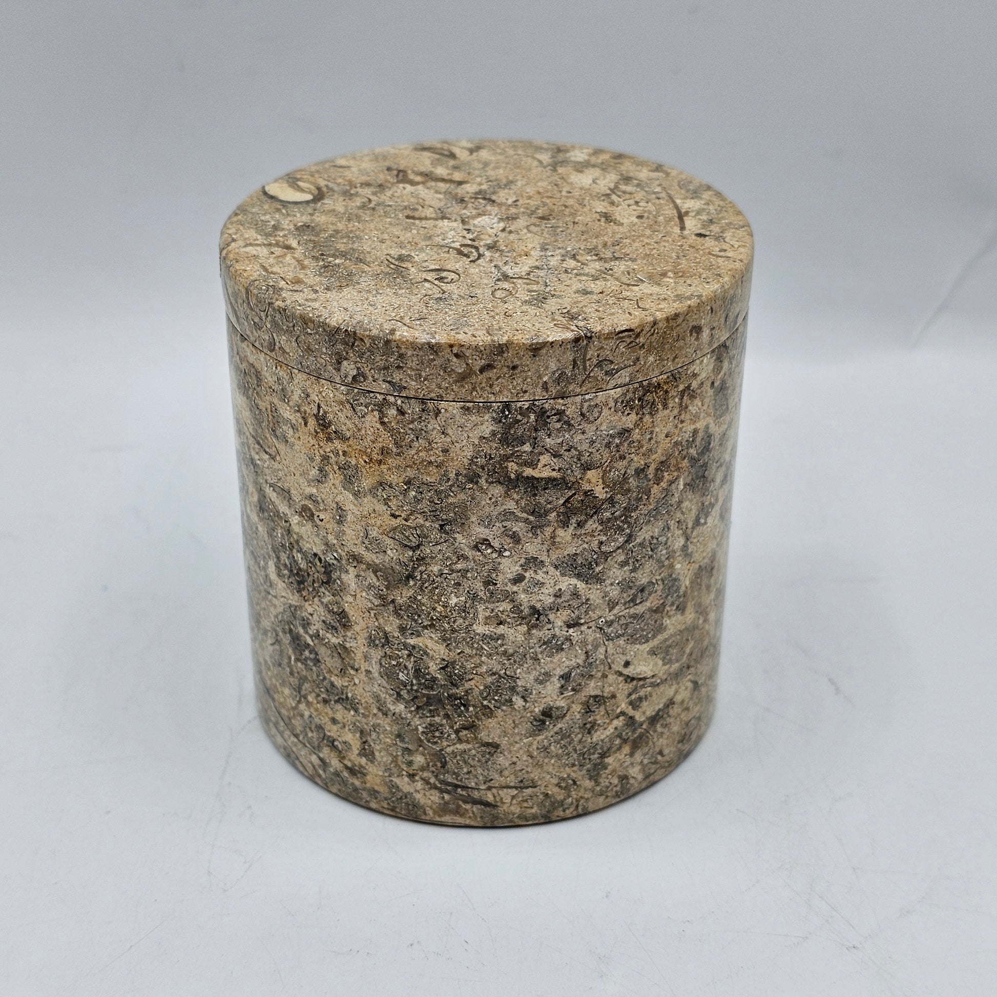 This expertly crafted Brown Fossil Marble Lidded Jar adds a touch of elegance to any space. The unique fossil marble design is both sophisticated and timeless. Featuring a secure lid, this jar is perfect for storage or display. Enhance your decor with this luxurious and functional piece.