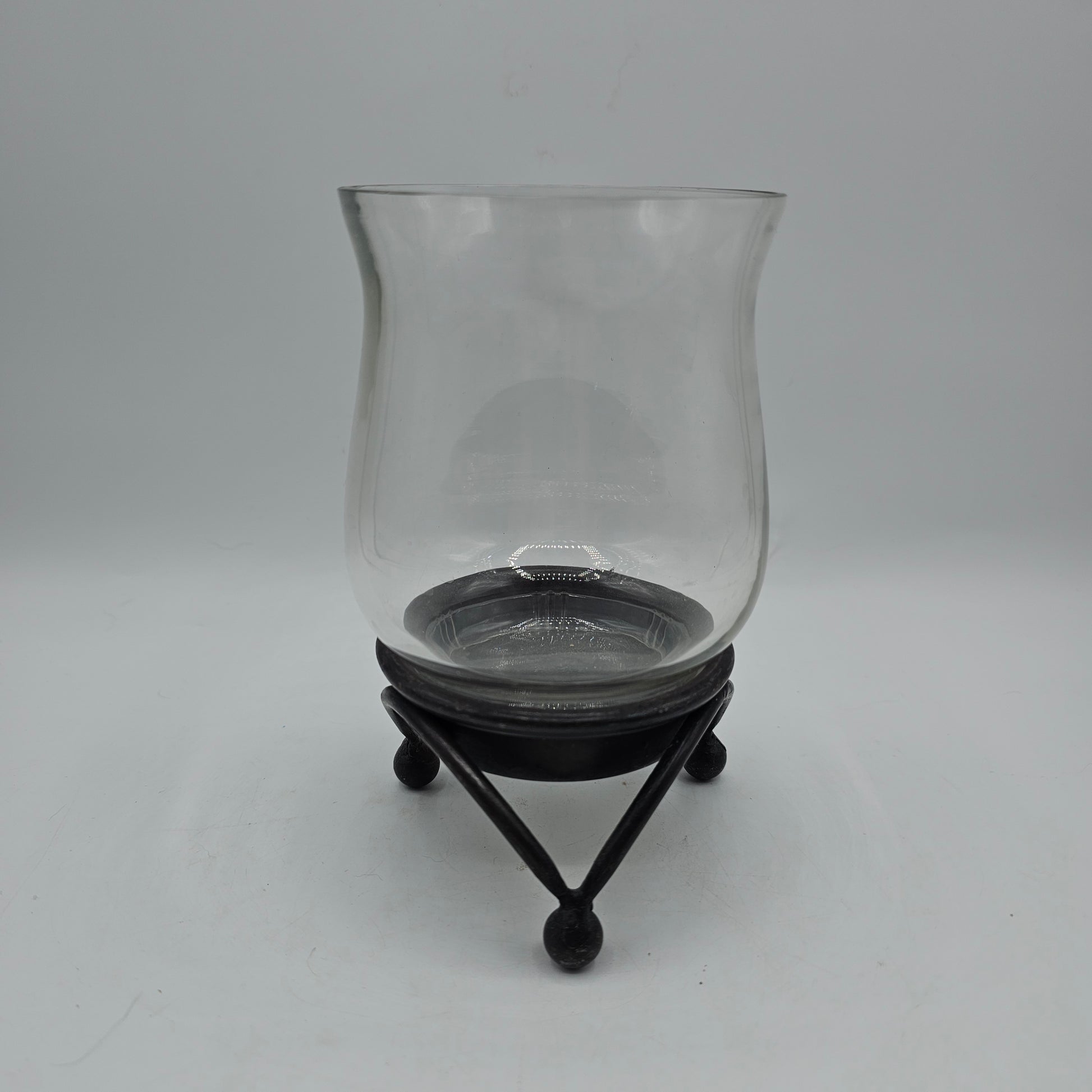 Pottery Barn Metal Candle Holder with Glass Shade - 6" tall