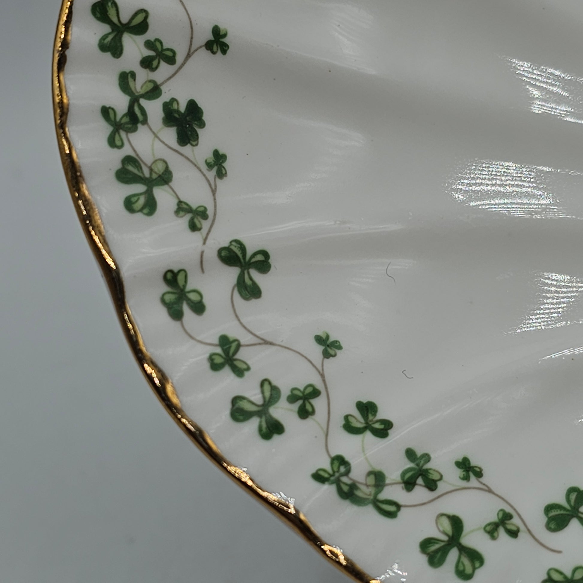 Royal Tara Bone China Shell Shaped Trinket Dish with Green Shamrock Design - Made in Ireland