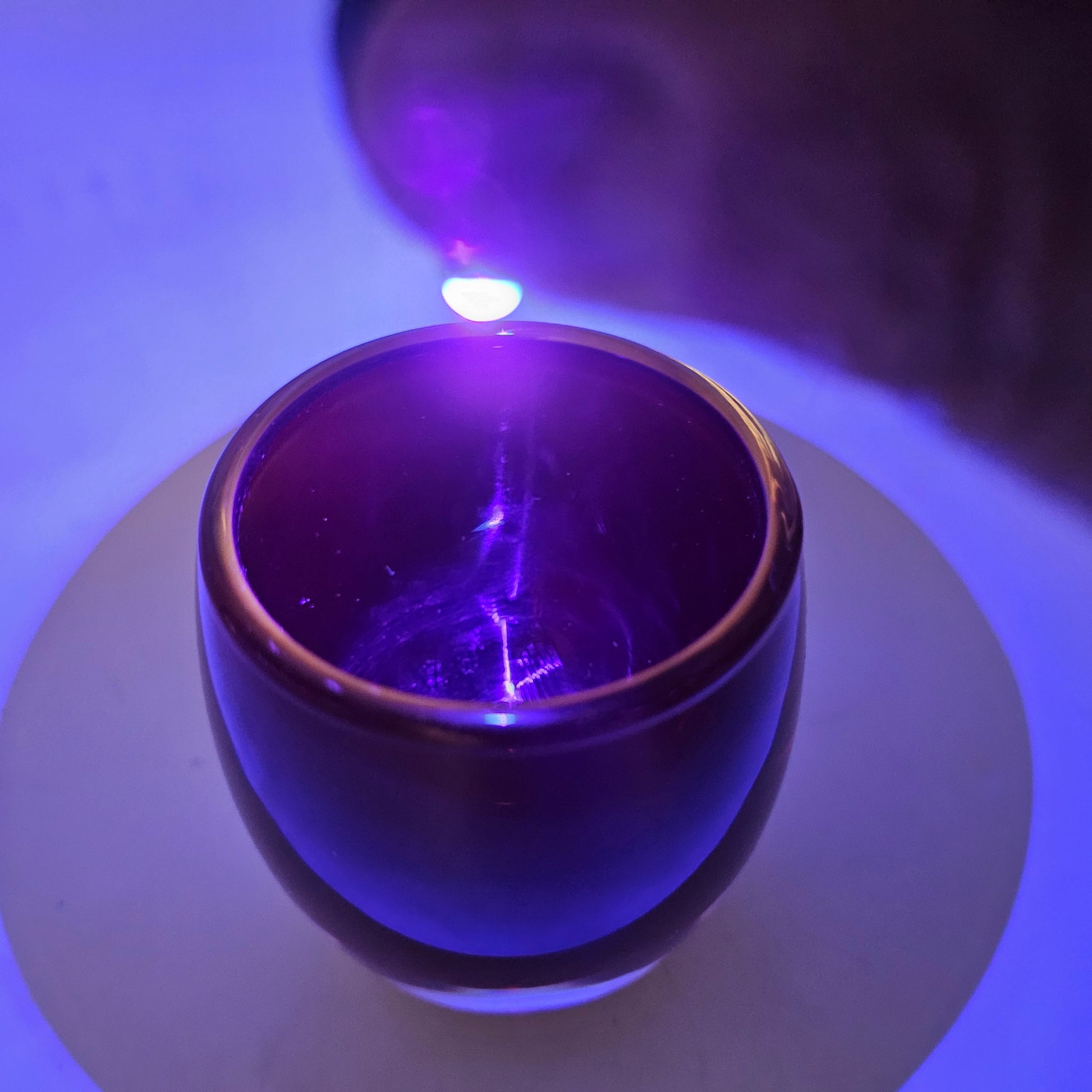 Crafted in Poland by skilled artisans, the Crate & Barrel Diva Red Glass Votive Candle Holder is a stunning addition to any home decor. Made from high-quality glass, this 3" tall holder is perfect for adding a warm, flickering glow to any room. The rim is UV reactive and gliws orange under a black light. Elevate your candle game with this elegant piece.
