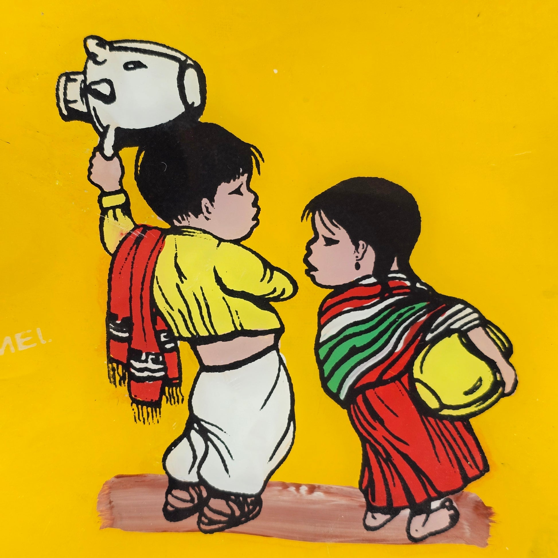 This Decorative Yellow Ruffled Edge Mexican Folk Art Plate is a vibrant and unique addition to any home decor. A vintage piece made in Cozumel, it features a hook for easy hanging and depicts traditional Mexican folk art. The ruffled edge adds an elegant touch, making it a must-have for any art enthusiast.