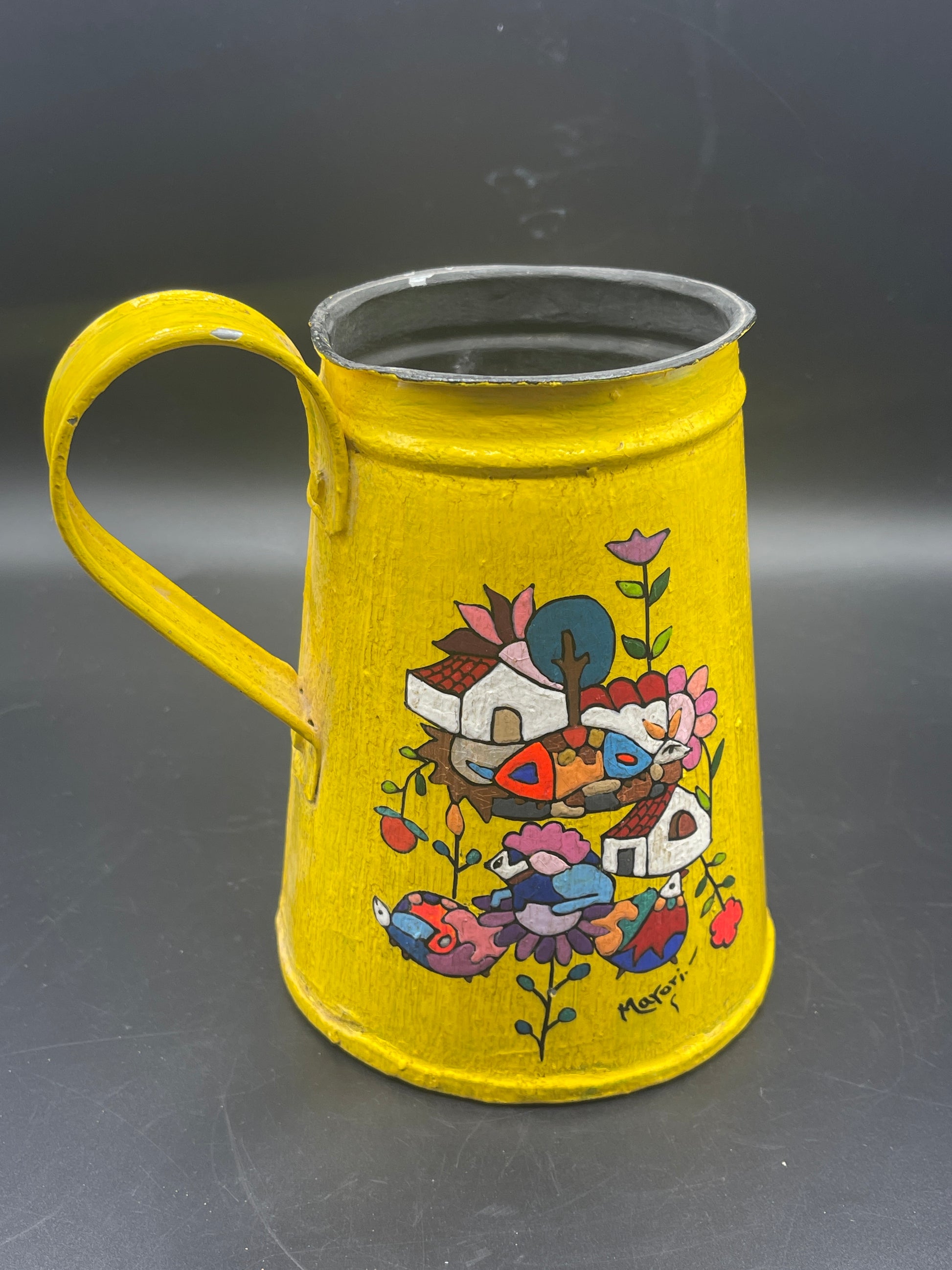 Hand Painted Folk Art Can