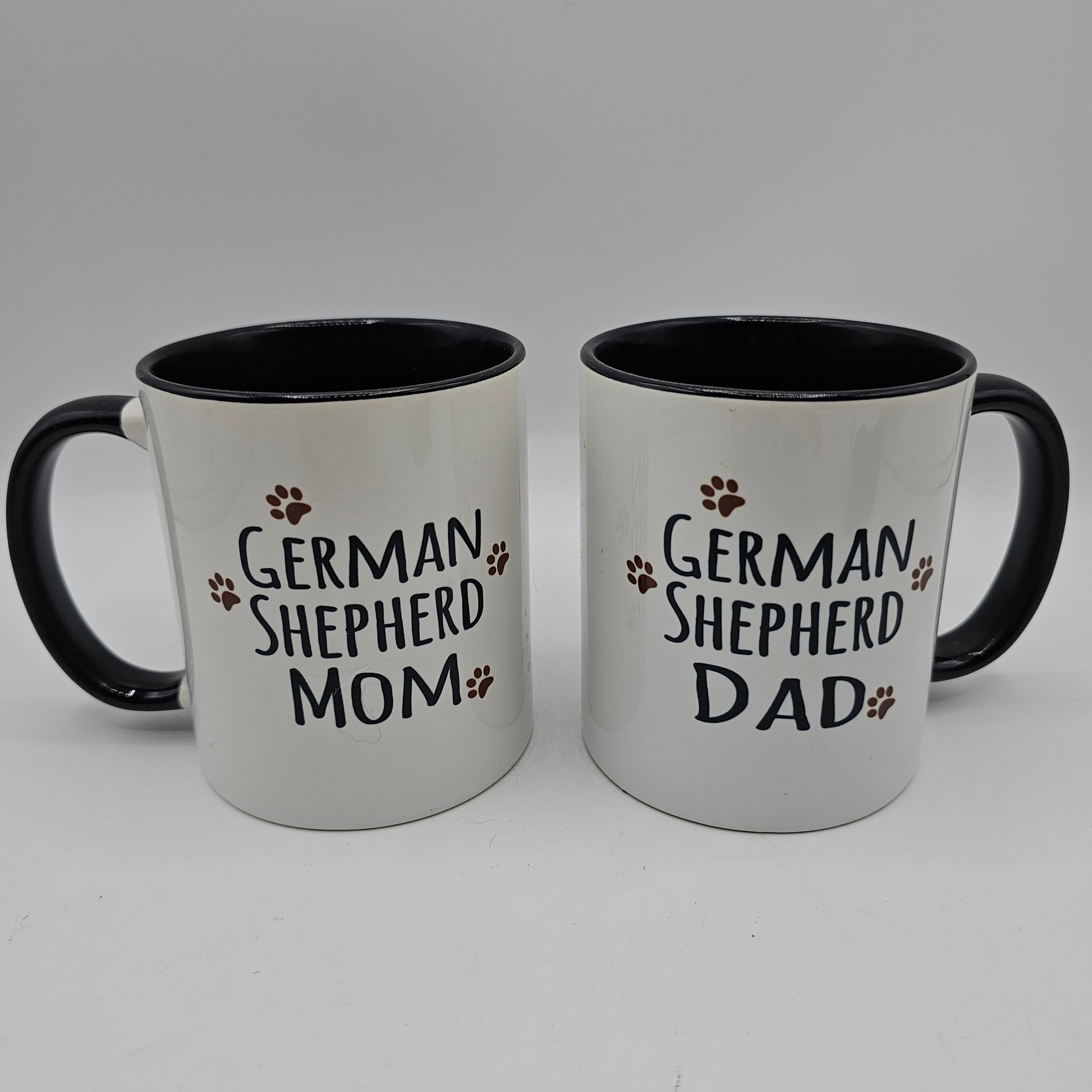 This German Shepherd Dad and Mom Mug Set is perfect for any proud dog parent. Made with high-quality ceramic, these mugs feature a charming design of a German Shepherd and the words "Dad" and "Mom" underneath. Show off your love for your furry family members with these stylish and functional mugs.
