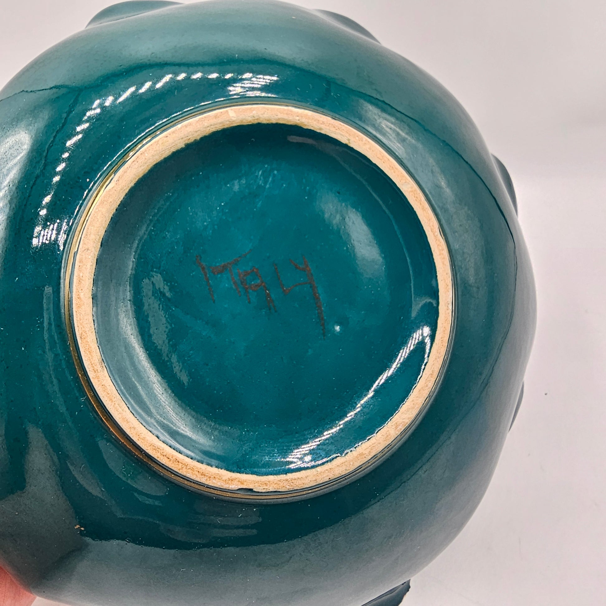 Vintage Italian Green Ruffle Bowl with Hand Painted Flowers
