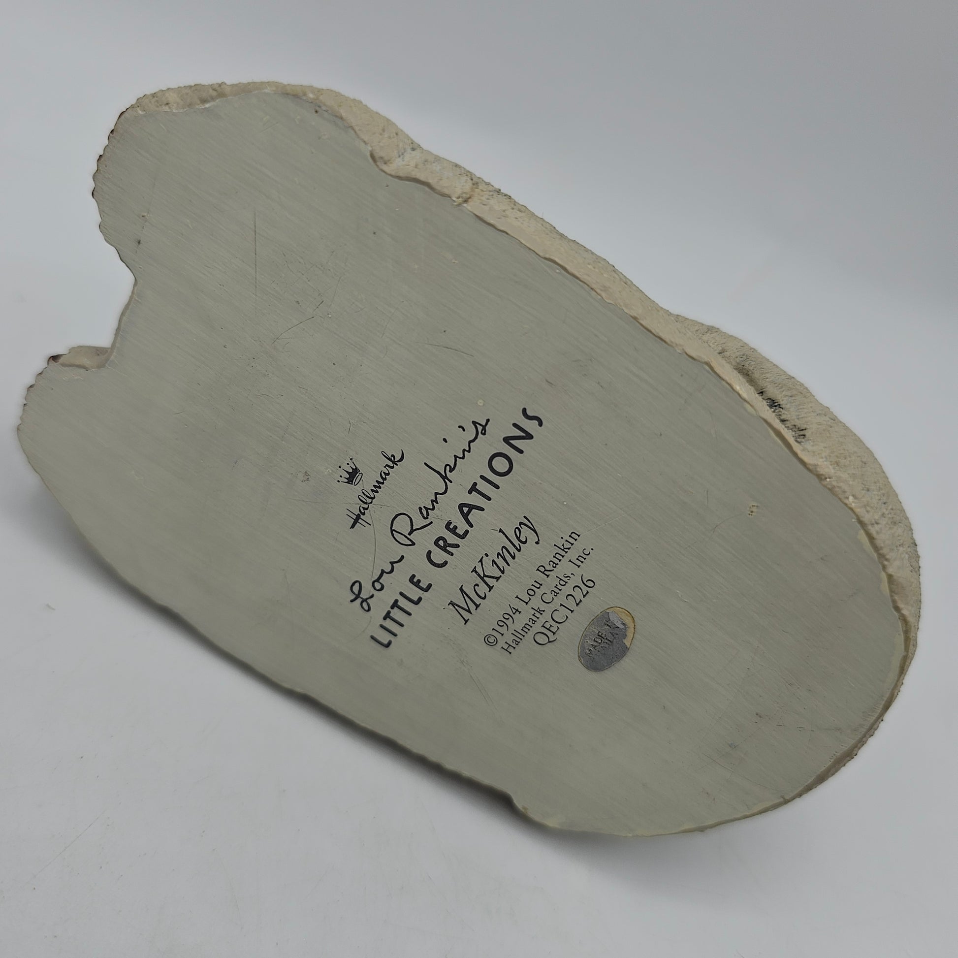 Expertly crafted in 1994 by Hallmark and designed by Lou Rankins, this adorable 5" reclining bear named McKinley is the perfect addition to any bear collector's collection. With intricate detailing and high-quality materials, this bear is sure to bring joy and charm to any room. A must-have for any bear enthusiast.