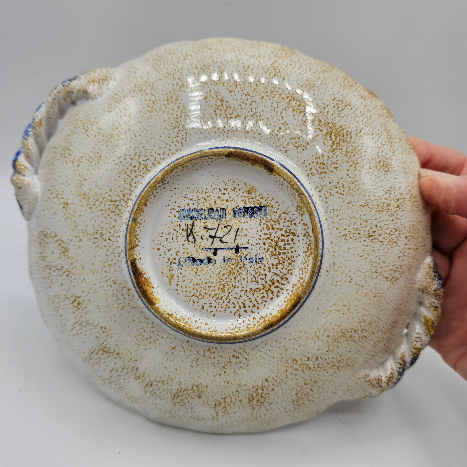 Hand Painted Floral Italian Ceramic Bowl with Handles