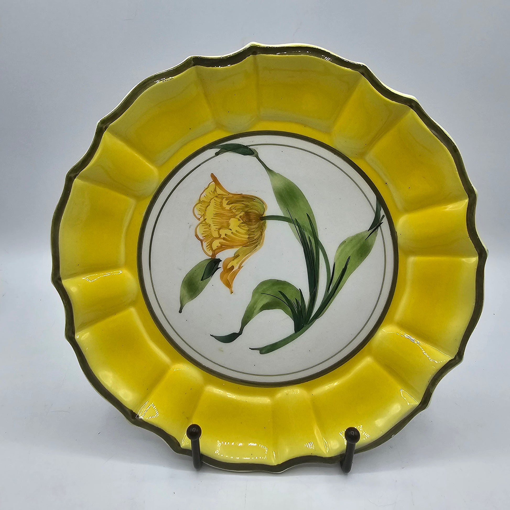 Hand Painted Italian Plate with Yellow Tulip Flower Marked 16/85 Stamped Made in Italy
