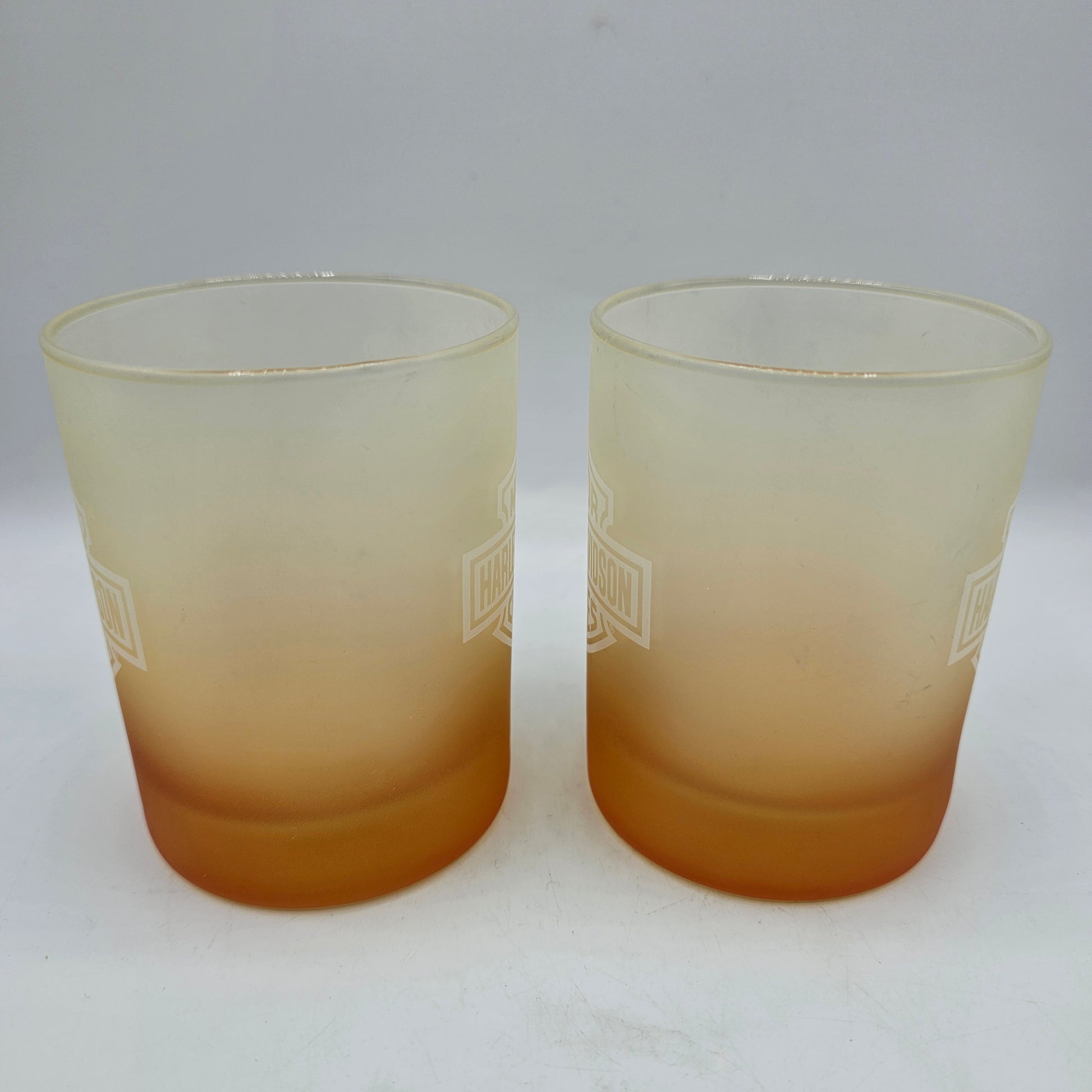Harley Davidson 12oz Logo Glass Tumblers - Frosted Satin Fade to Orange - Set of 2