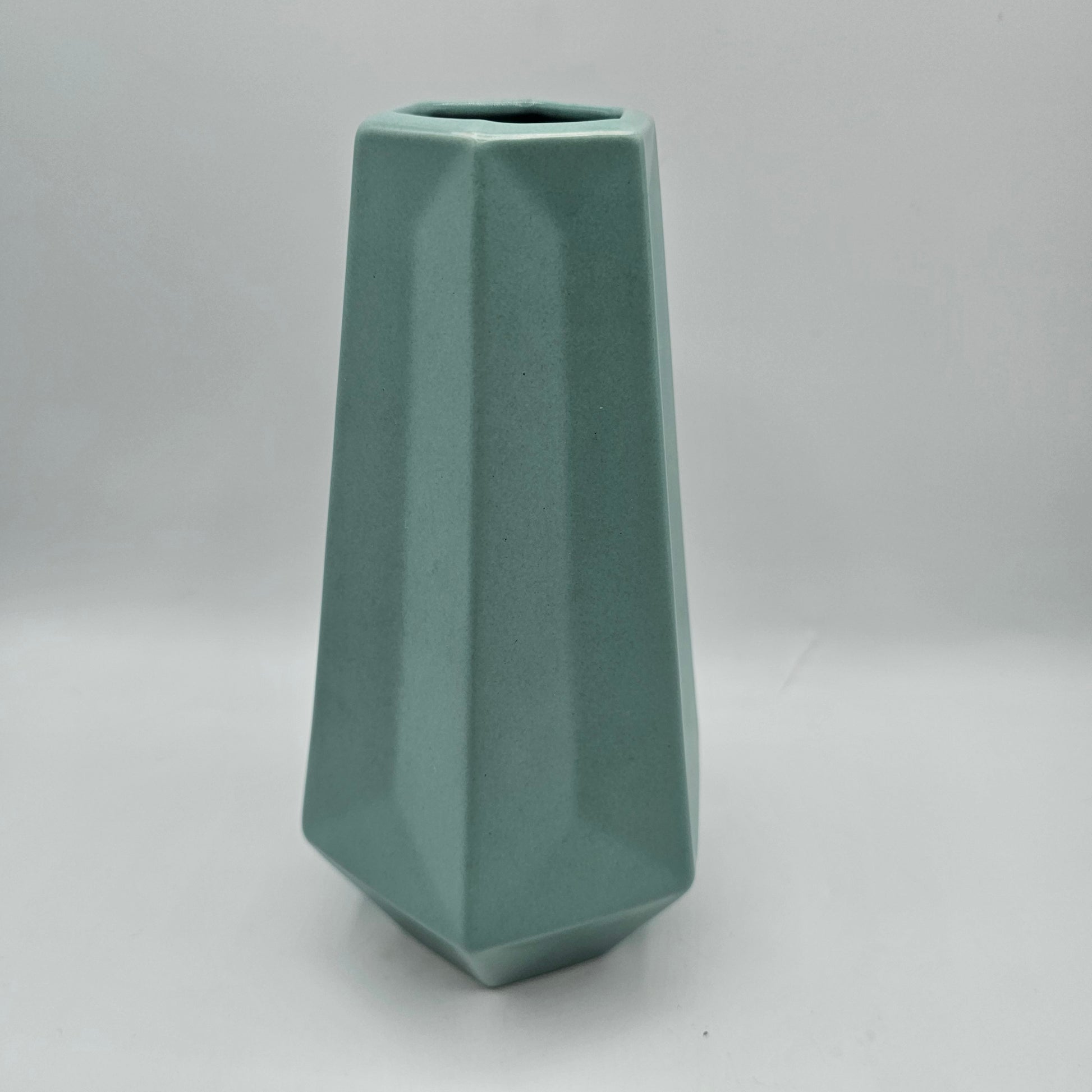 IKEA LIVSLÅNG vase in green with a faceted hexagon shape