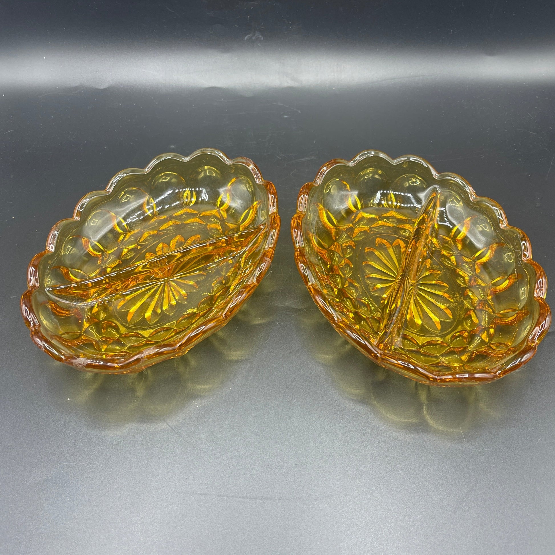 Honey Gold Indiana Glass Divided Dishes - Set of 2