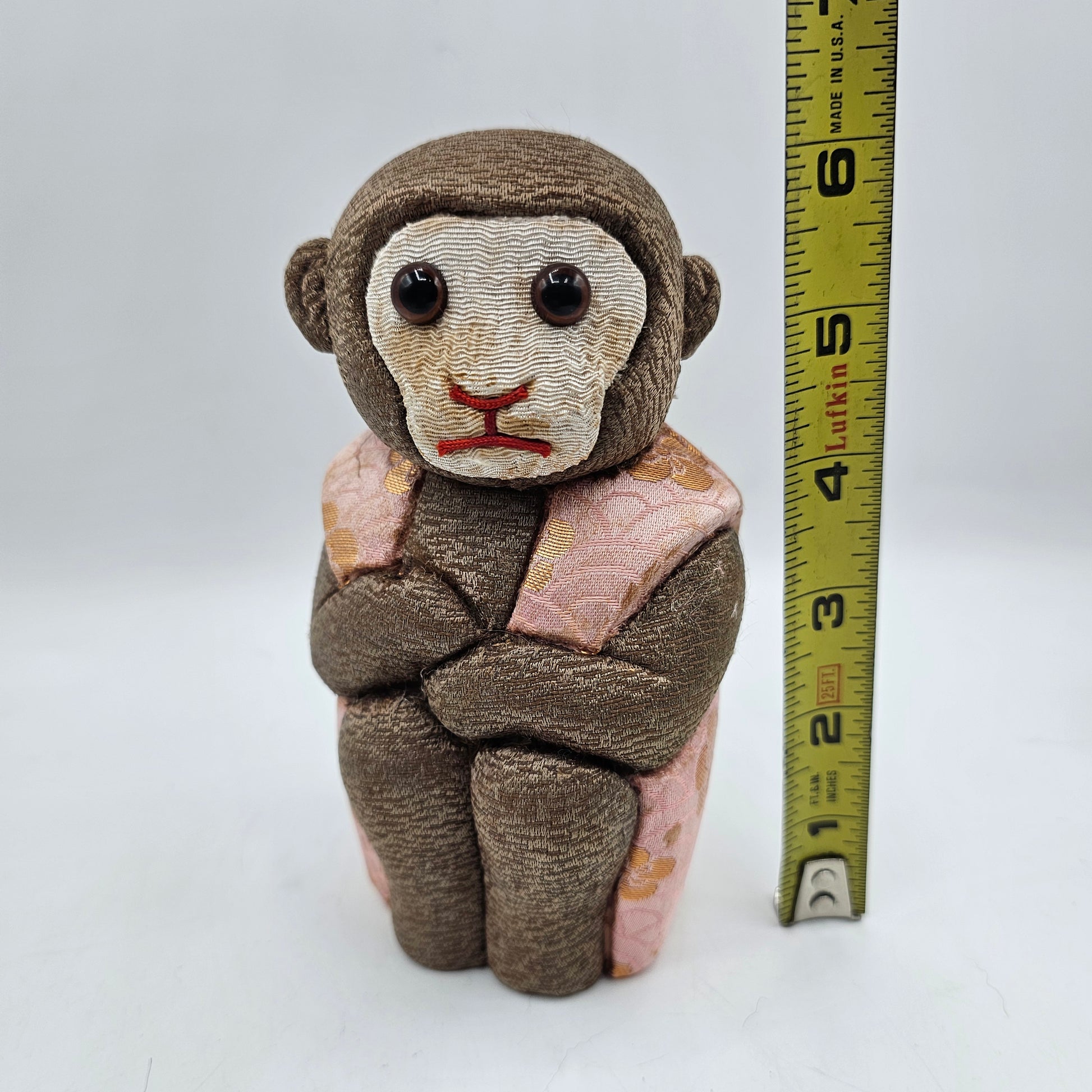 Japanese Kimekomi Pink Plush Monkey Figurine for Good Luck