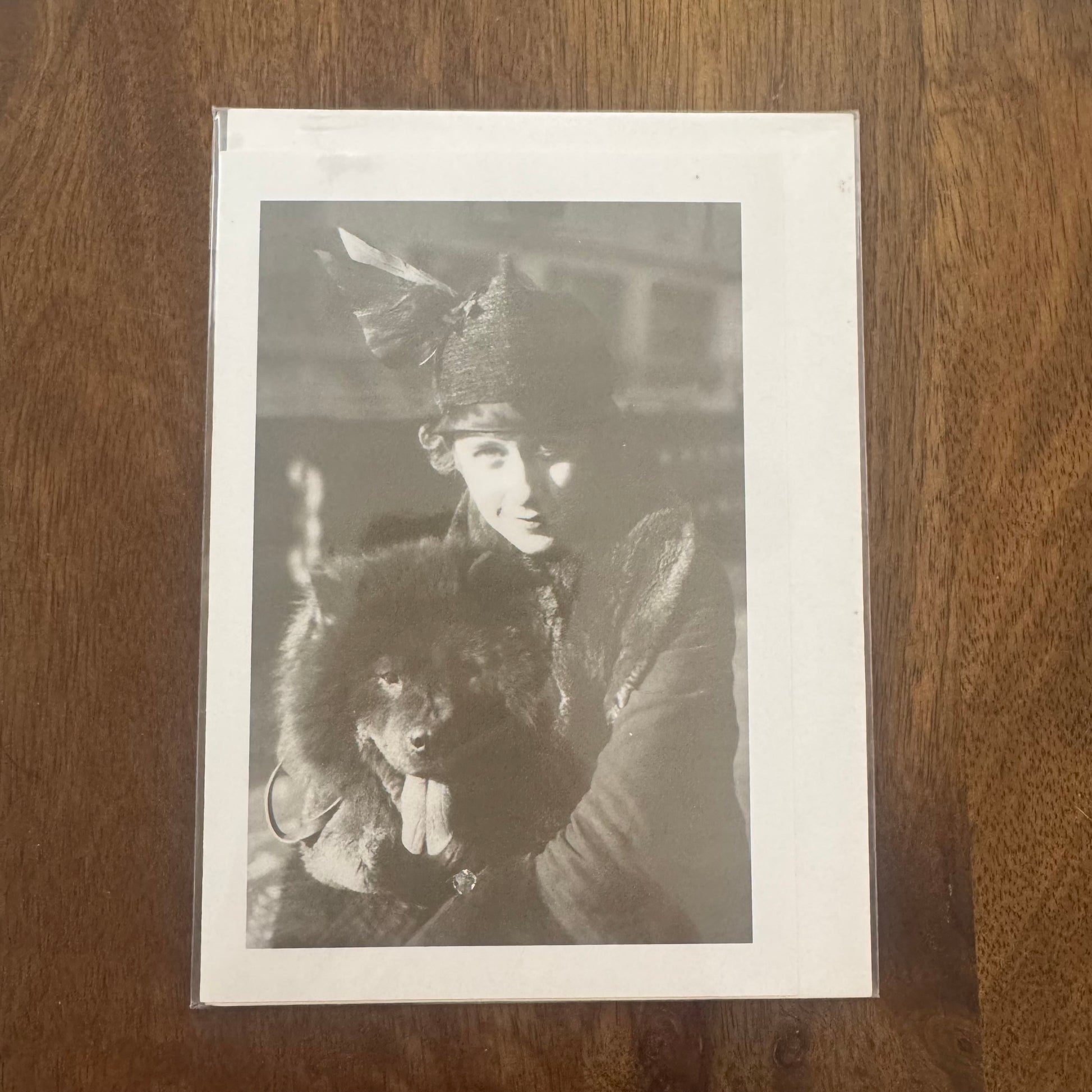 Lady in Hat With Chow-Chow Dog - Greeting Card #J-2