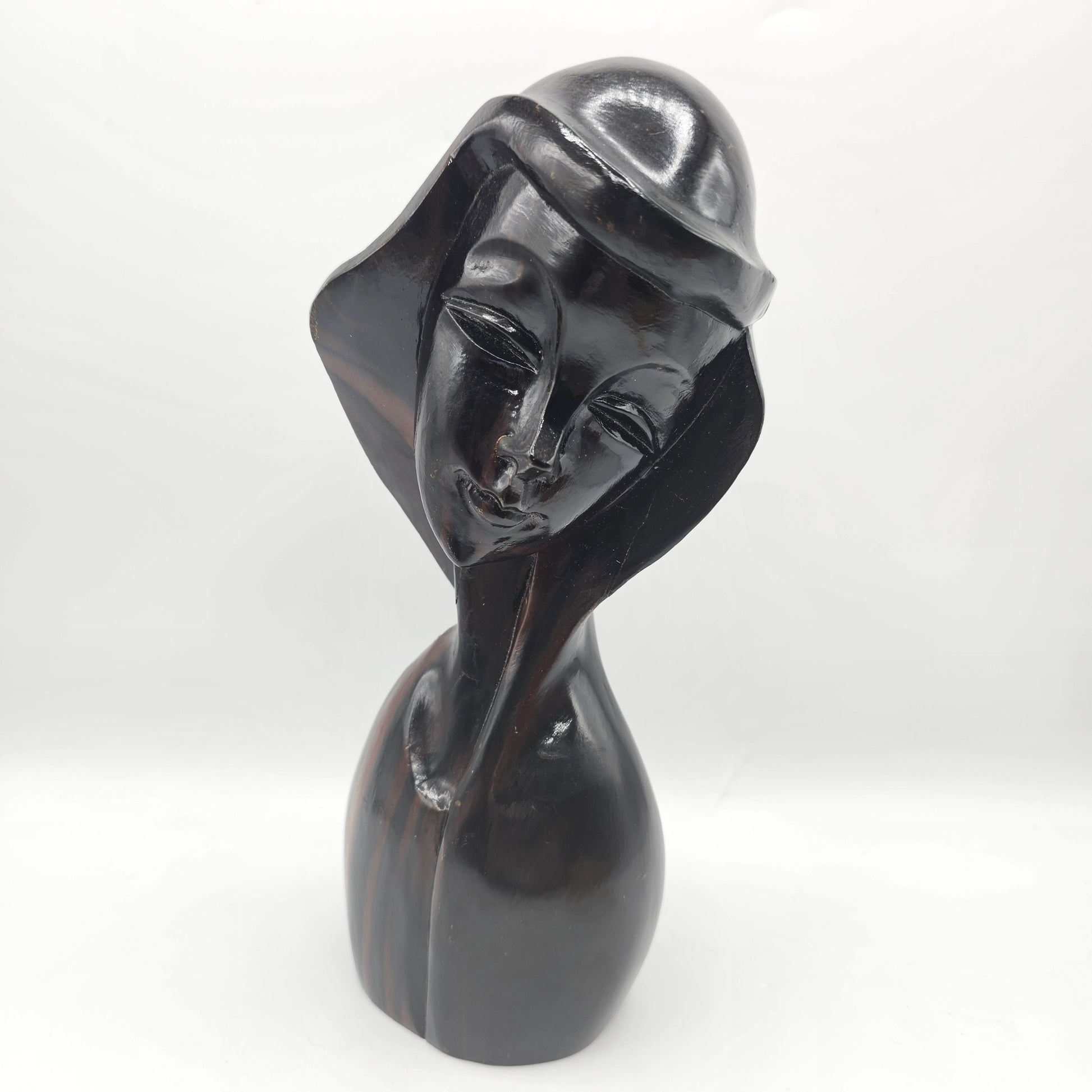 Madonna Carved Wood Bust with High Gloss Glaze
