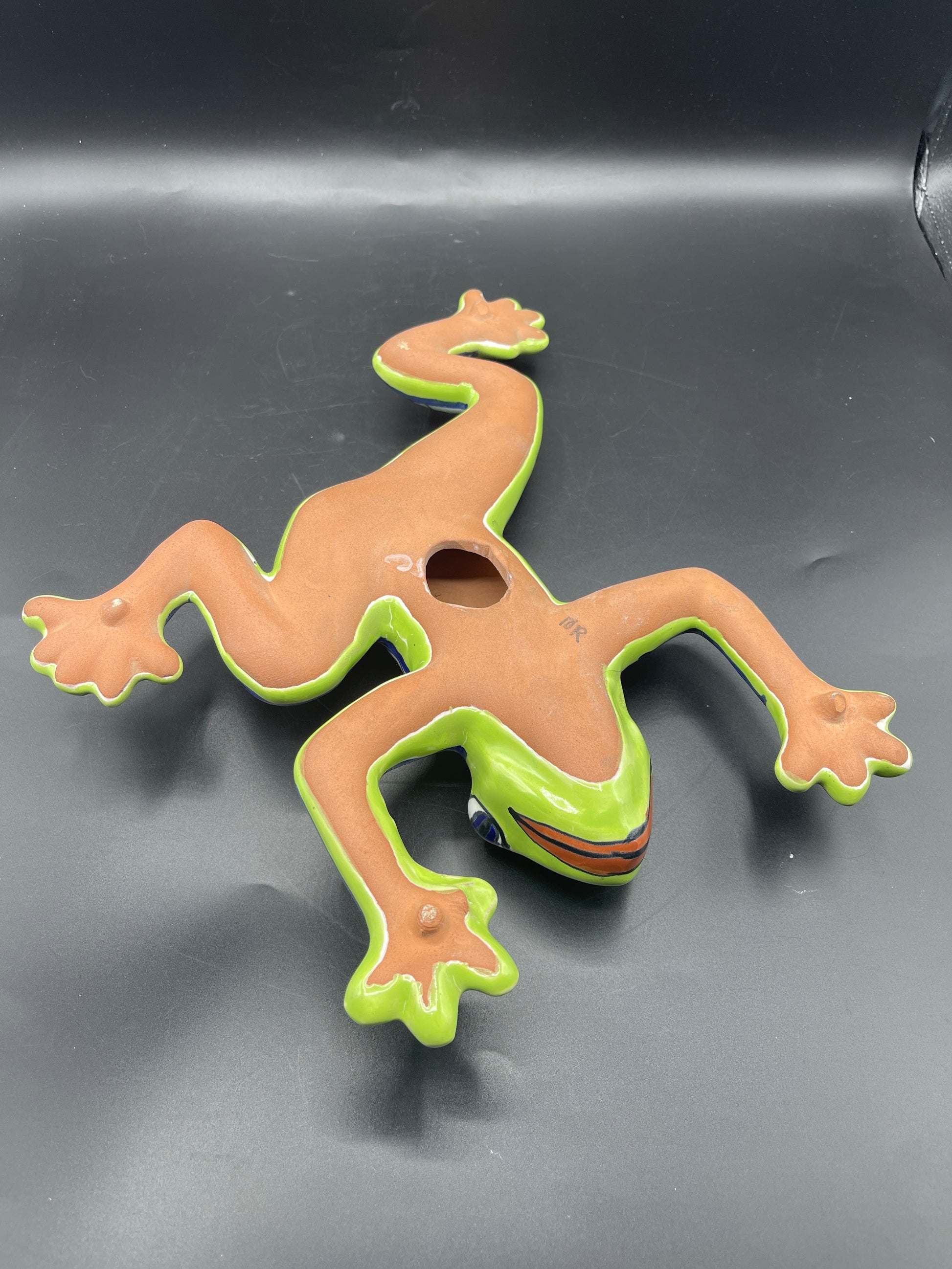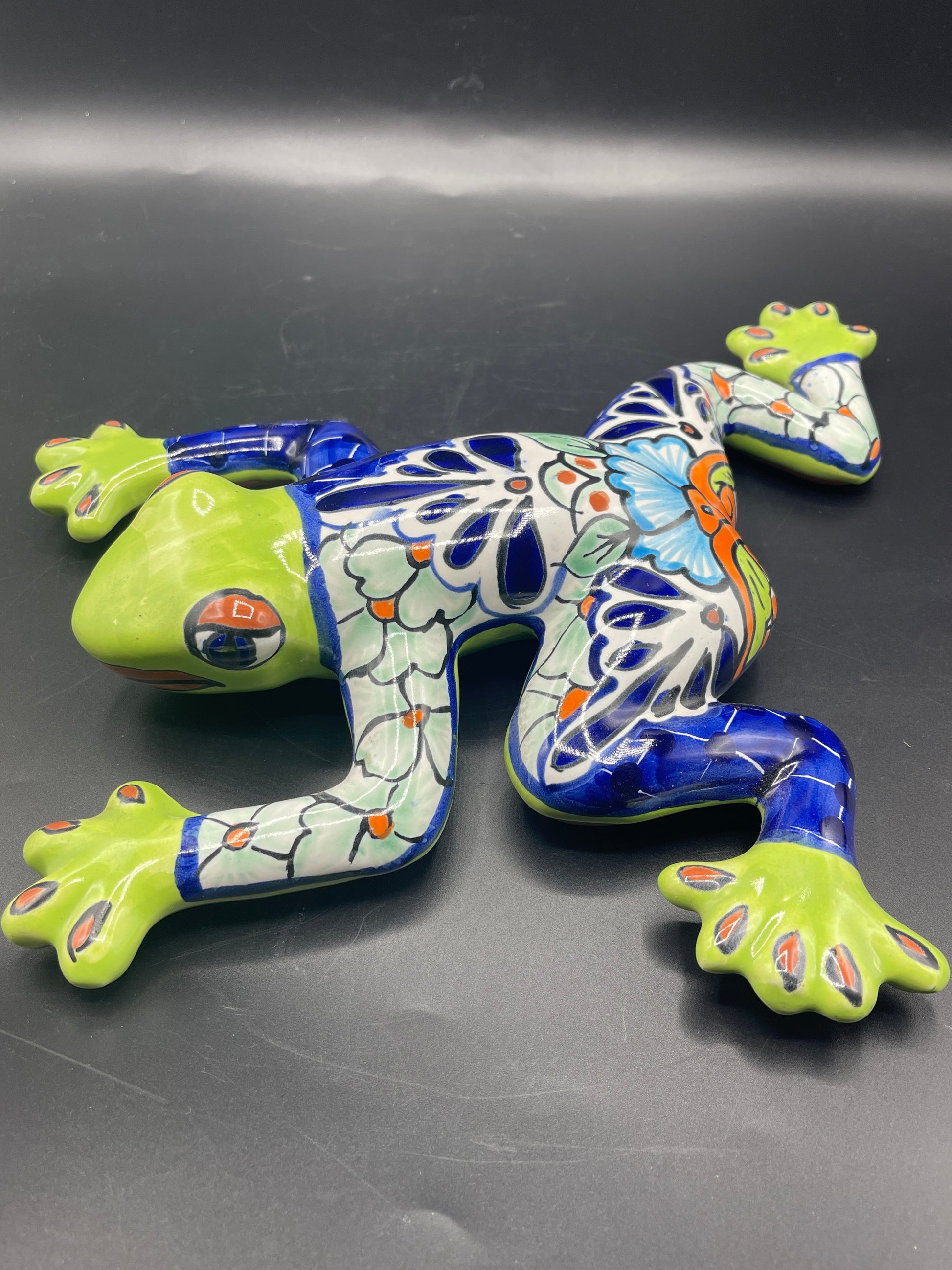 Mexican Tonala Pottery Blue and Green Wall Hanging Frog