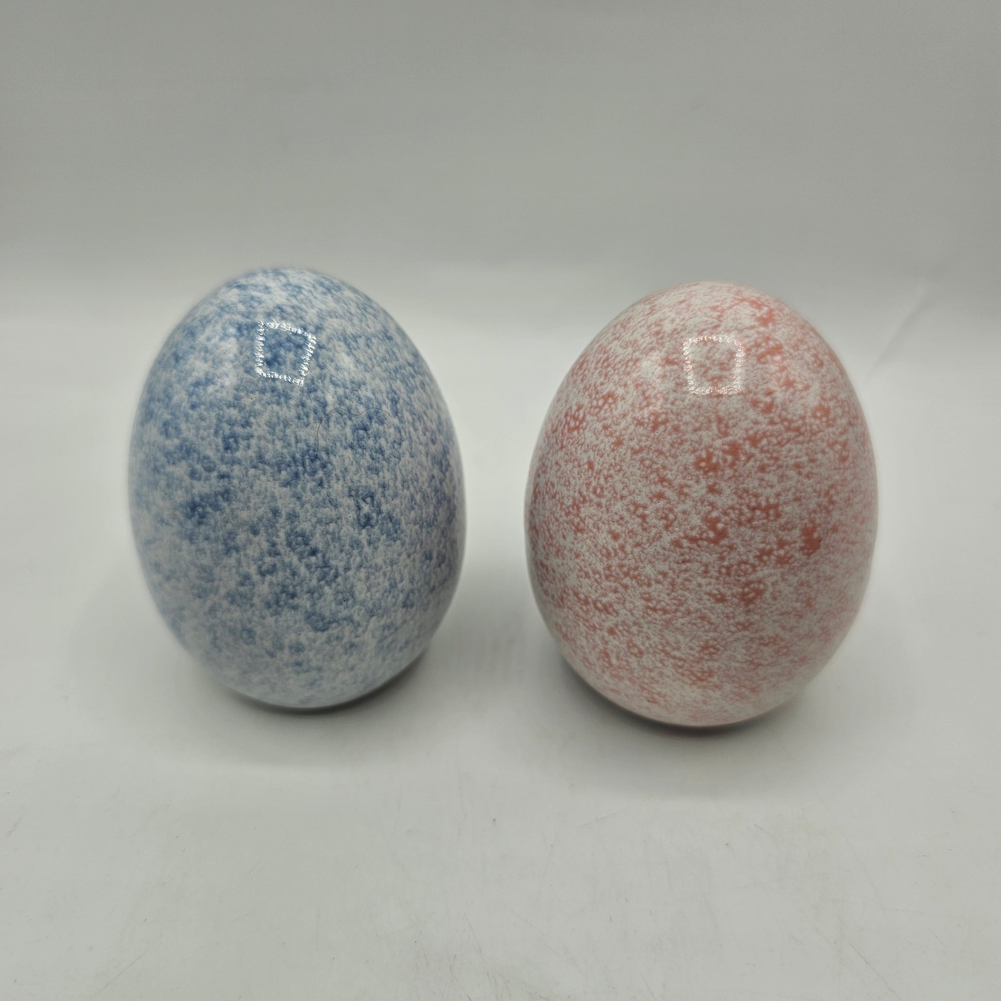 Expertly handcrafted in the traditional spongeware style, these Pink and Blue Ceramic Decorative Eggs add a touch of elegant charm to any space. Each one-of-a-kind piece features intricate detailing and vibrant colors, making them the perfect addition to any decorative collection. Elevate your home decor with these unique and beautiful spongeware eggs.