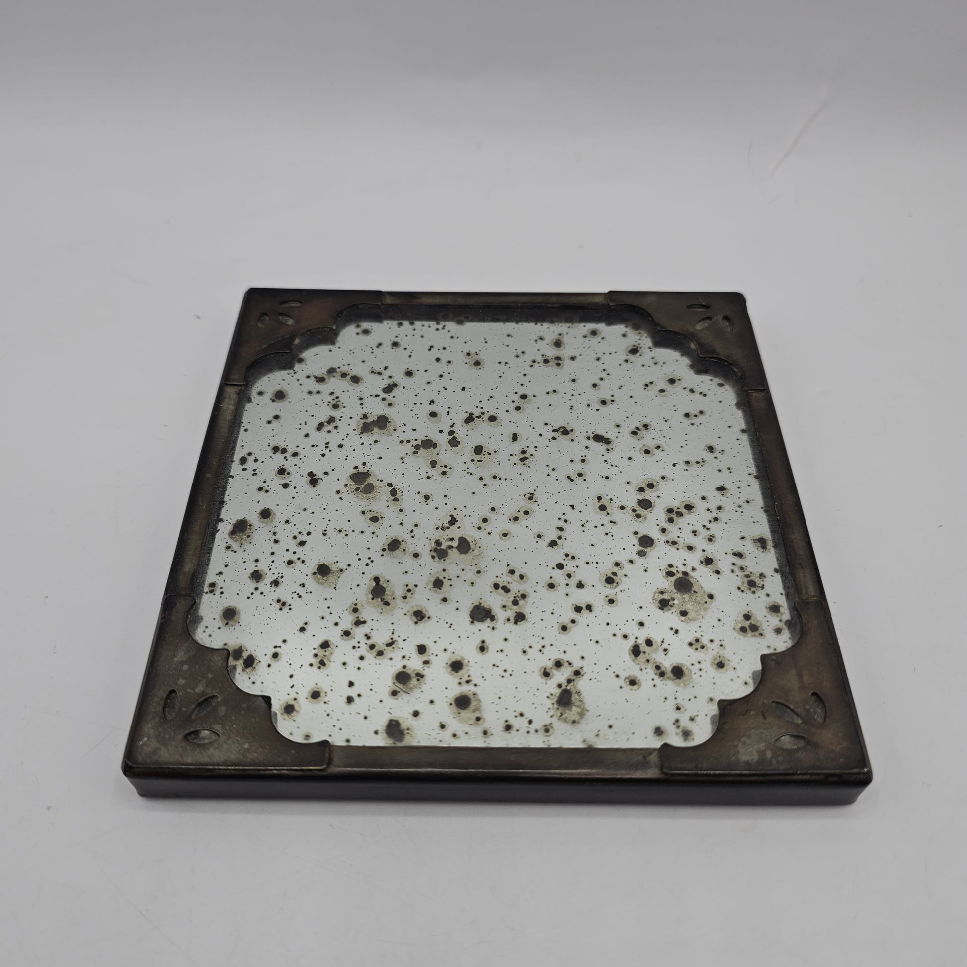 Pottery Barn Antiqued Mirrored Square Candle Tray / Miniatures Display Stand