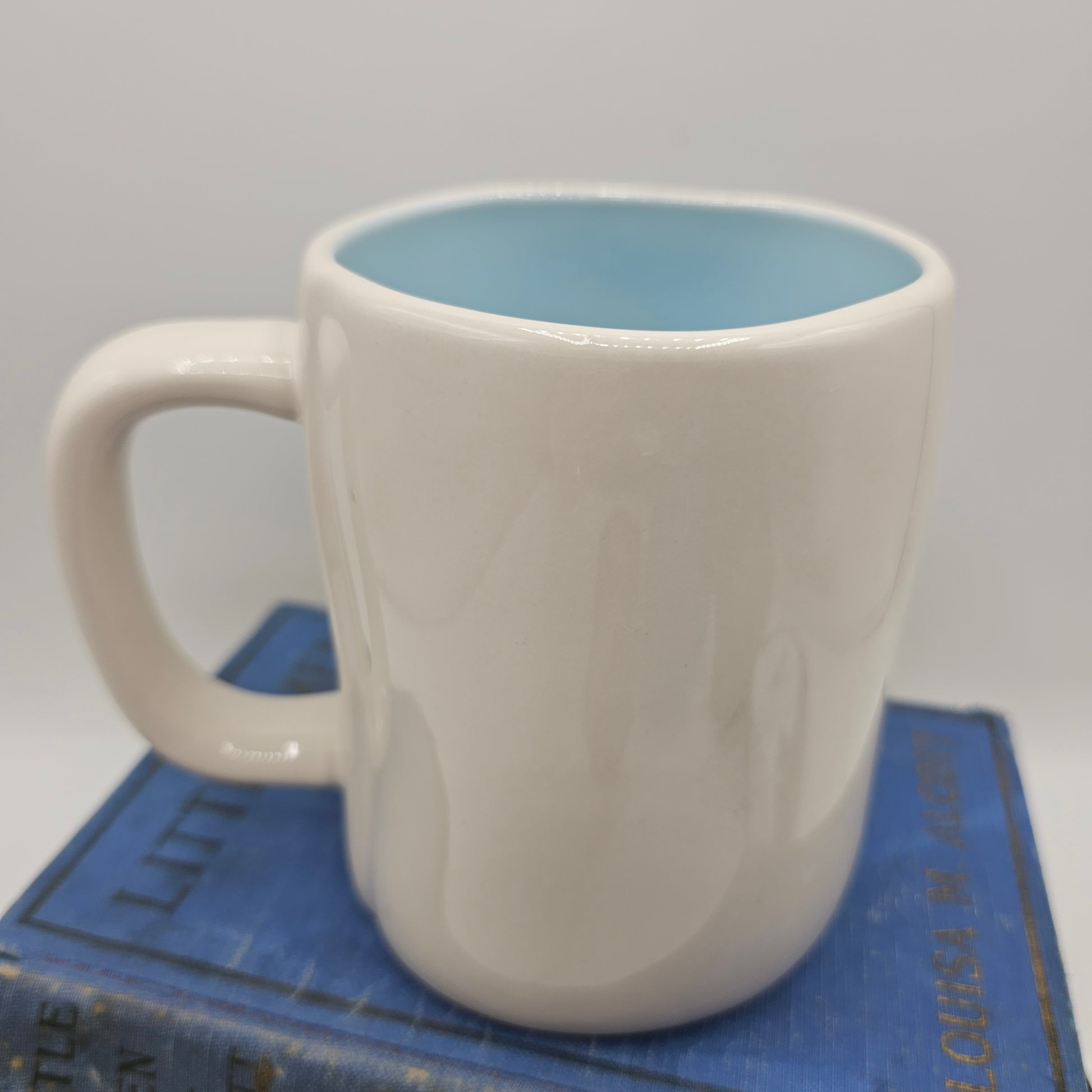 Elevate your daily coffee or tea routine with the Rae Dunn Robin's Egg Mug. Crafted with a beautiful blue interior, this ceramic mug adds a touch of charm to your beverage experience. Featuring the signature Rae Dunn font, this mug is both stylish and functional for everyday use.