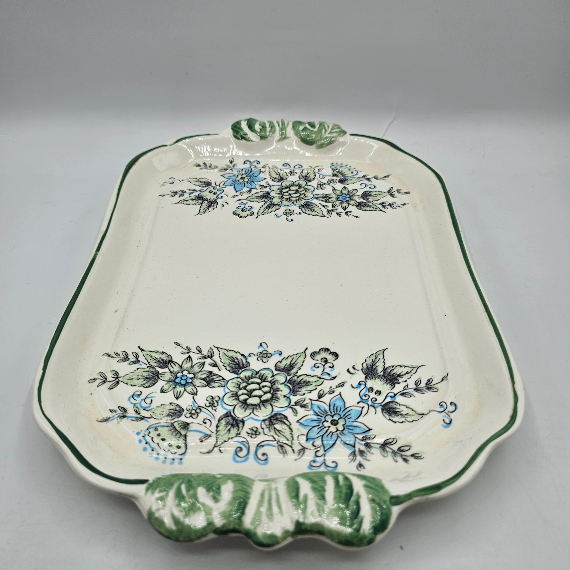 Vintage Green and Blue Floral Asparagus / Serving Dish - Japan