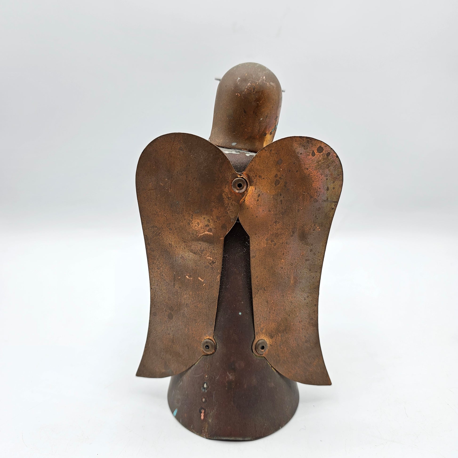 This small brass angel taper candlestick with large cup is a beautiful addition to any home or garden. Crafted with high-quality brass, it adds a touch of elegance and charm. The larger cup allows for more water to collect, creating a soothing and peaceful atmosphere. A must-have for any angel lover.