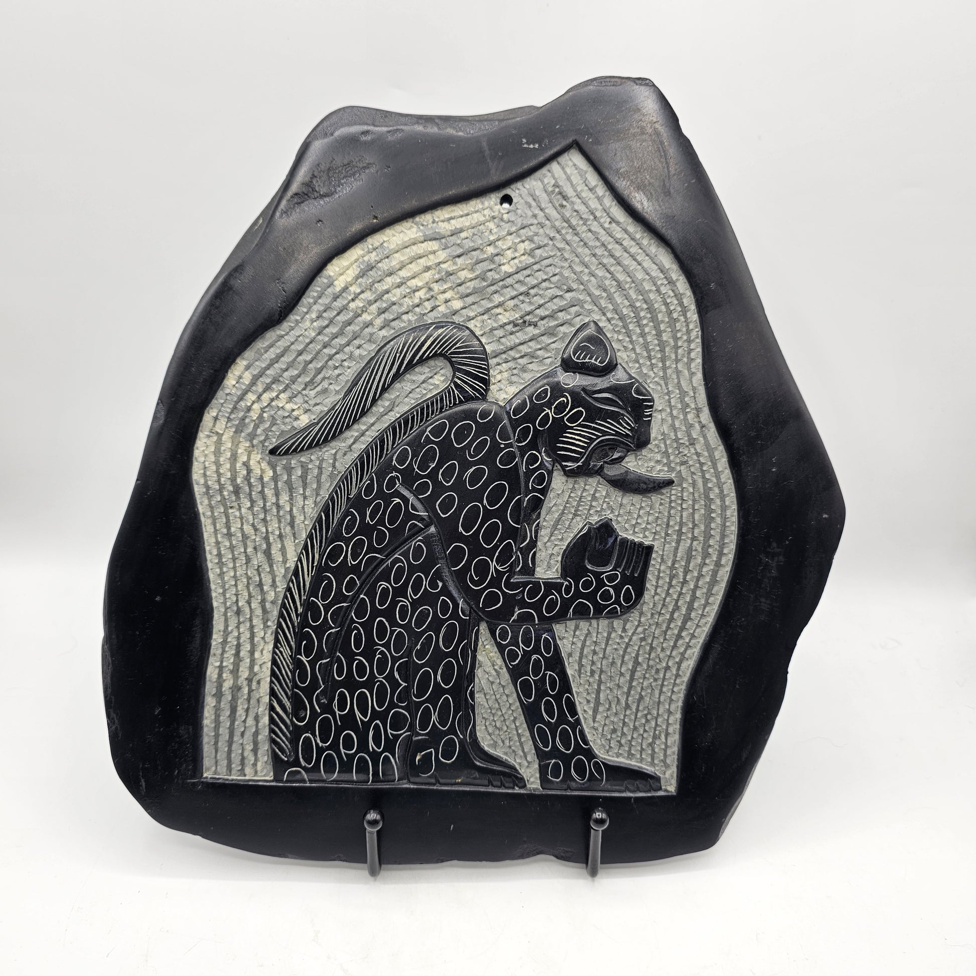 The Jaguar - Artisan Etching on Slate by Elvin Camal, San Jose Succotz, Belize