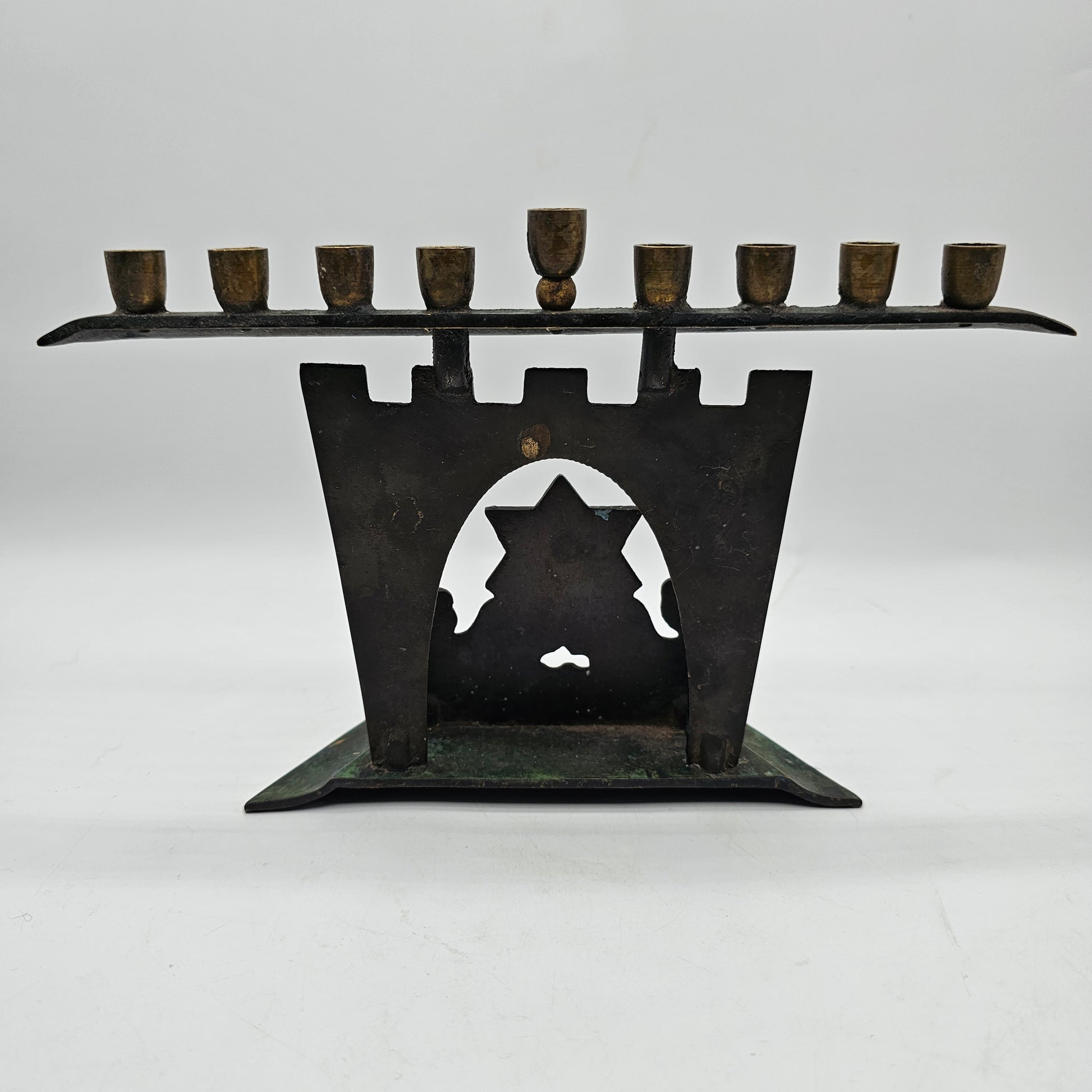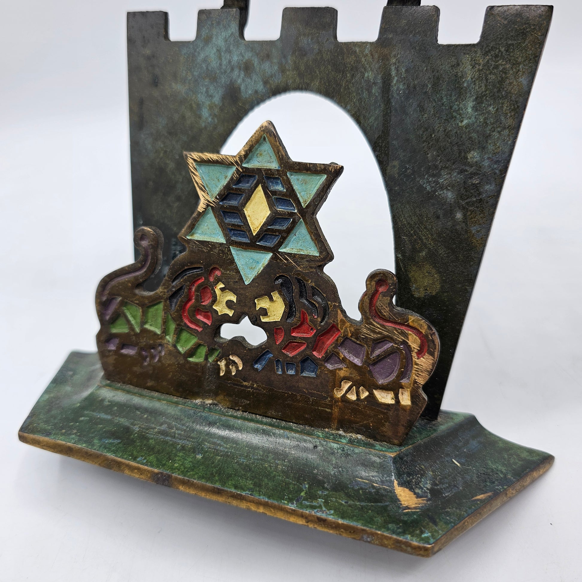 Vintage Solid Brass Painted Menorah for Taper Candles