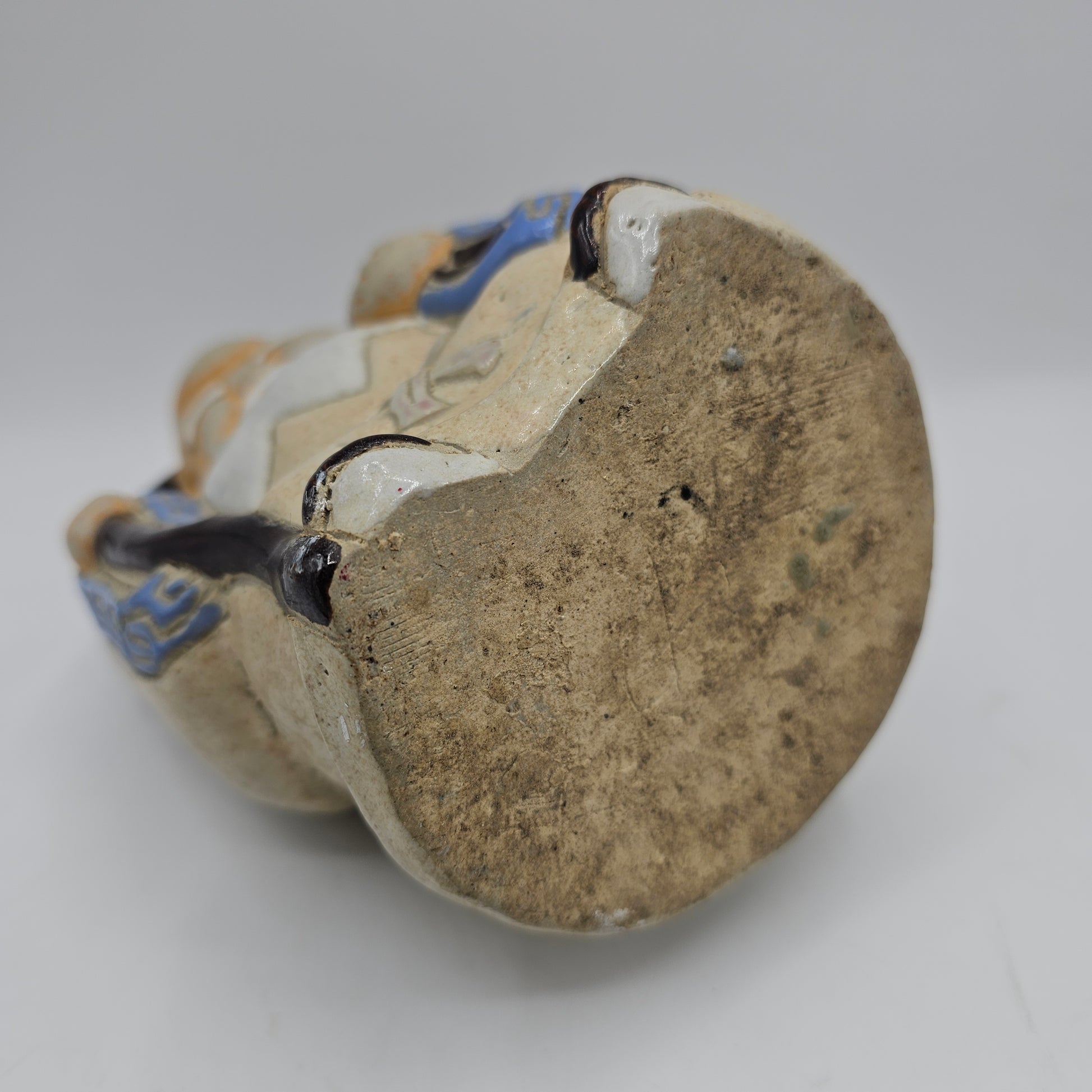Vintage Chinese Mud Man God of Longevity Pottery Coin Bank