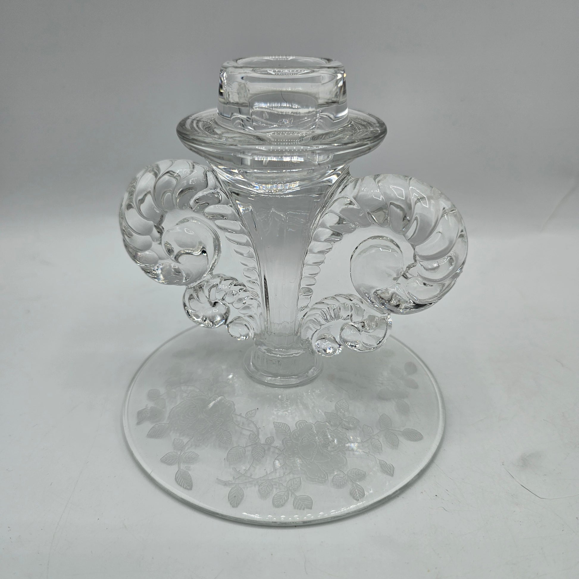 Vintage Fostoria Glass Taper Candlestick Candle Holder with Etched Roses - 4.5" tall for 1" Taper Candle