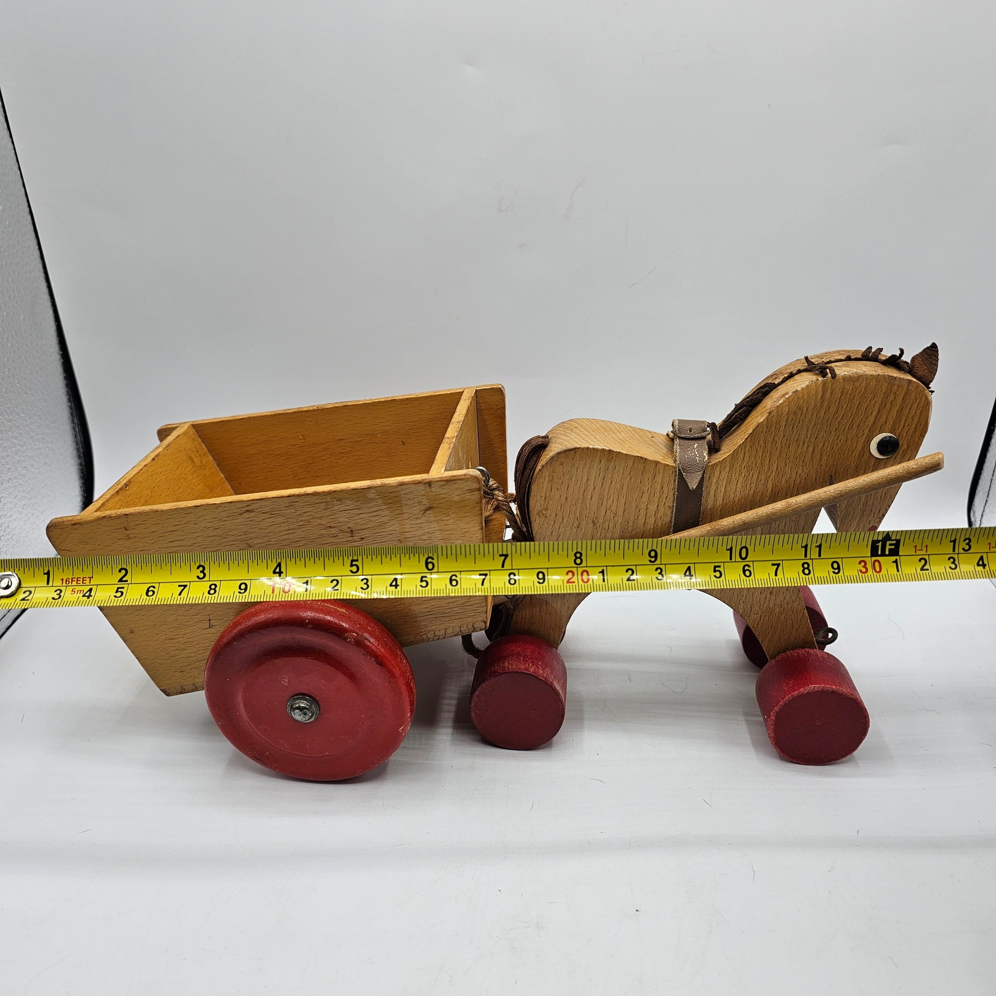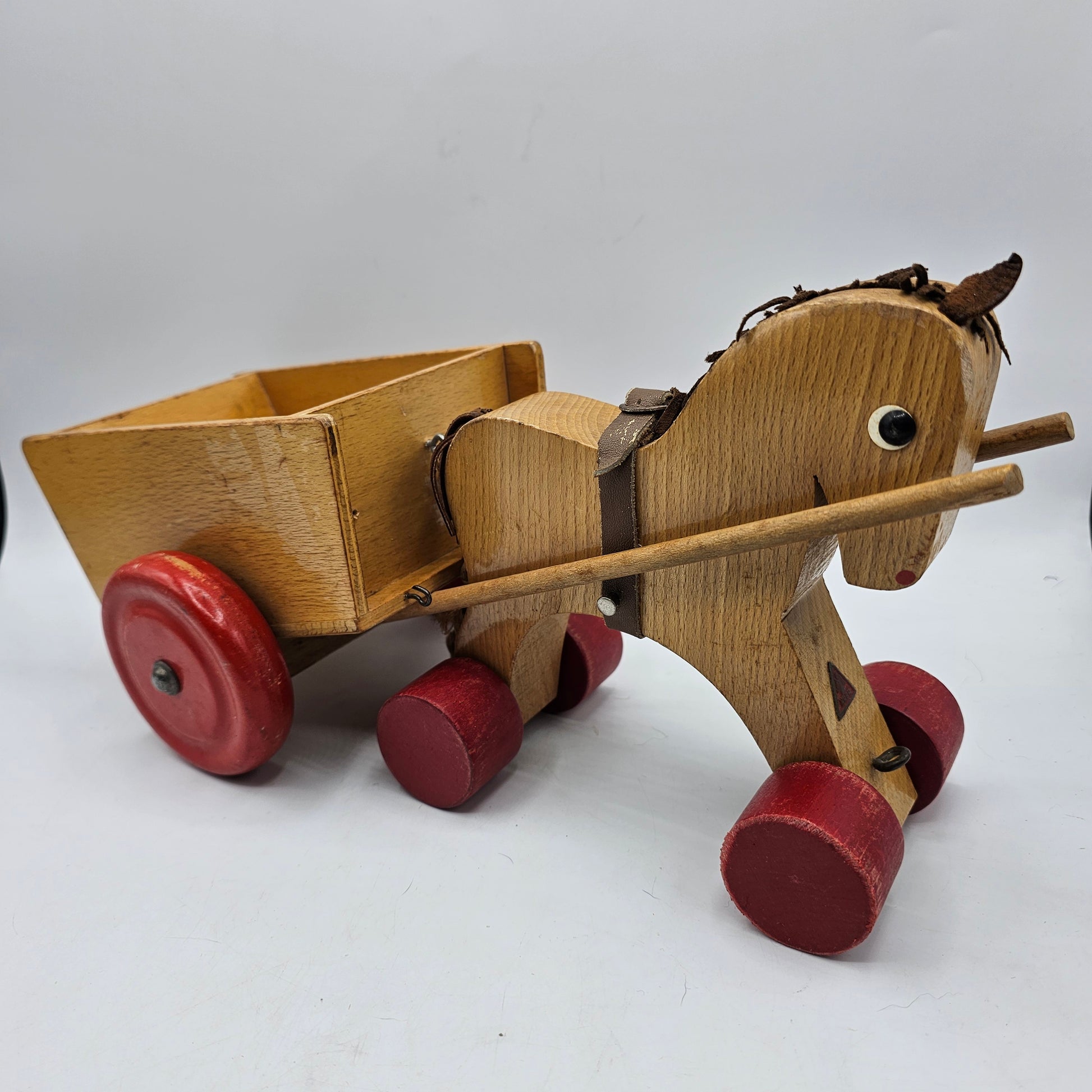 Vintage German Wooden Horse and Cart Toy