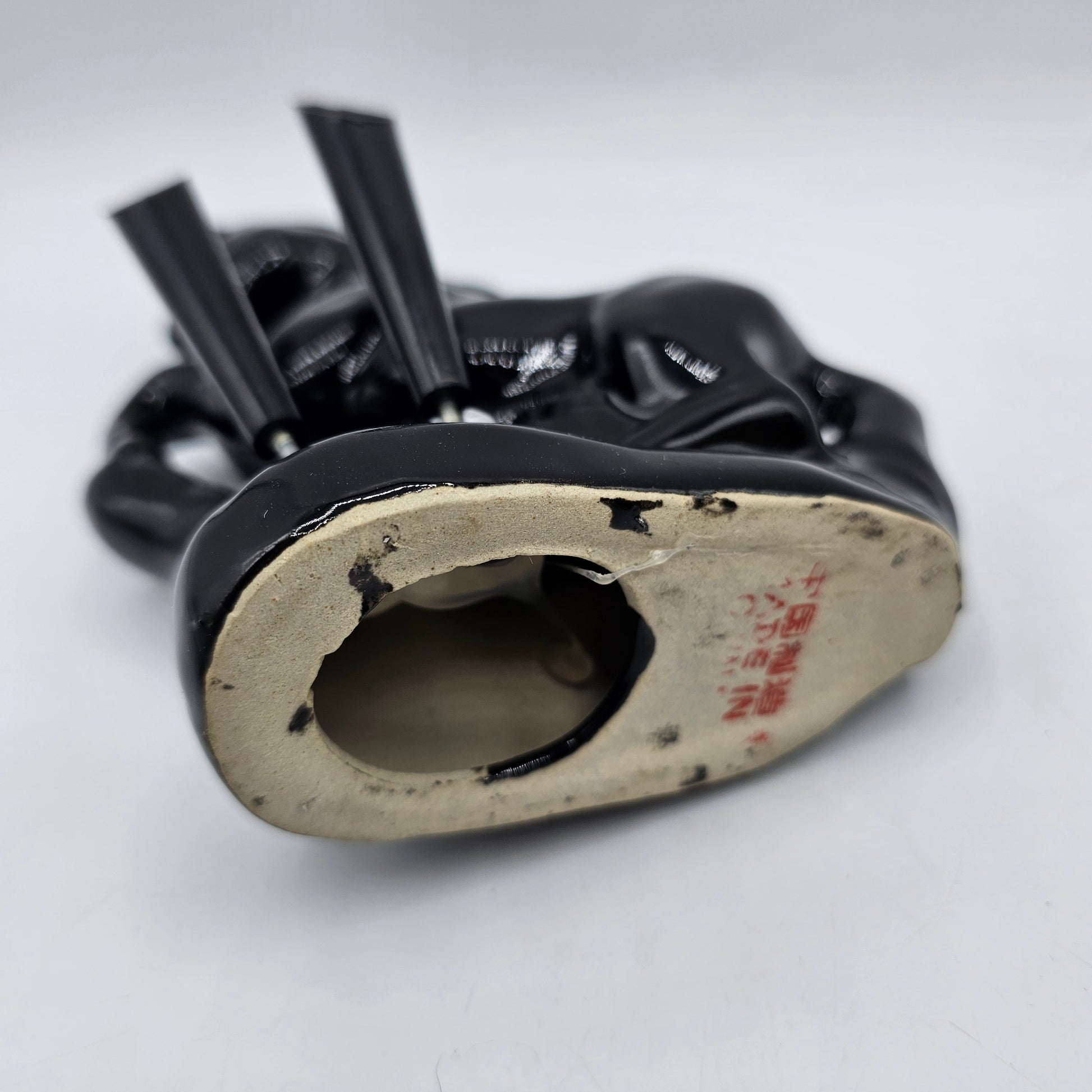 Vintage Glossy Black Ceramic Horse 2 Pen Holder / Desk Accessory