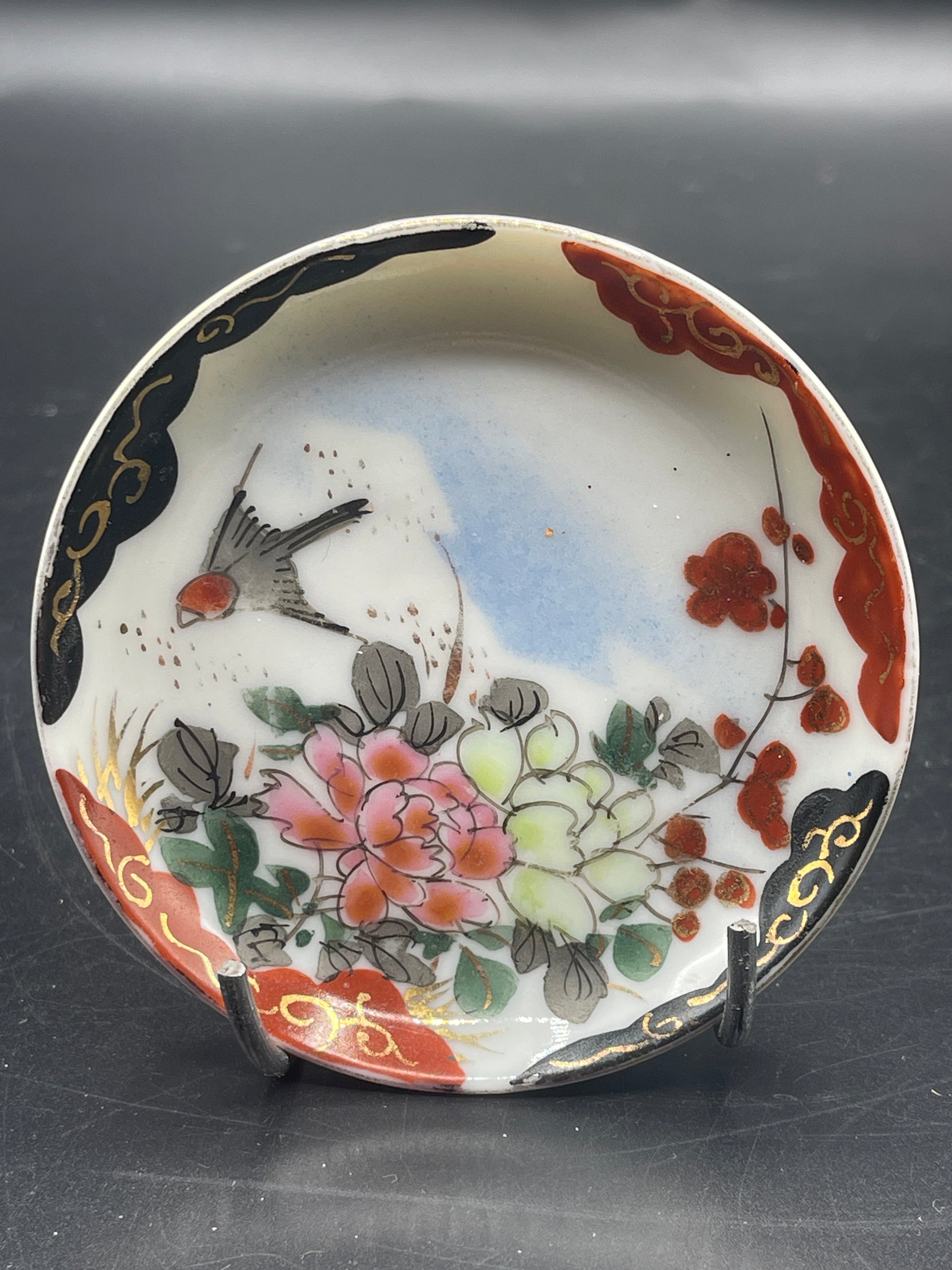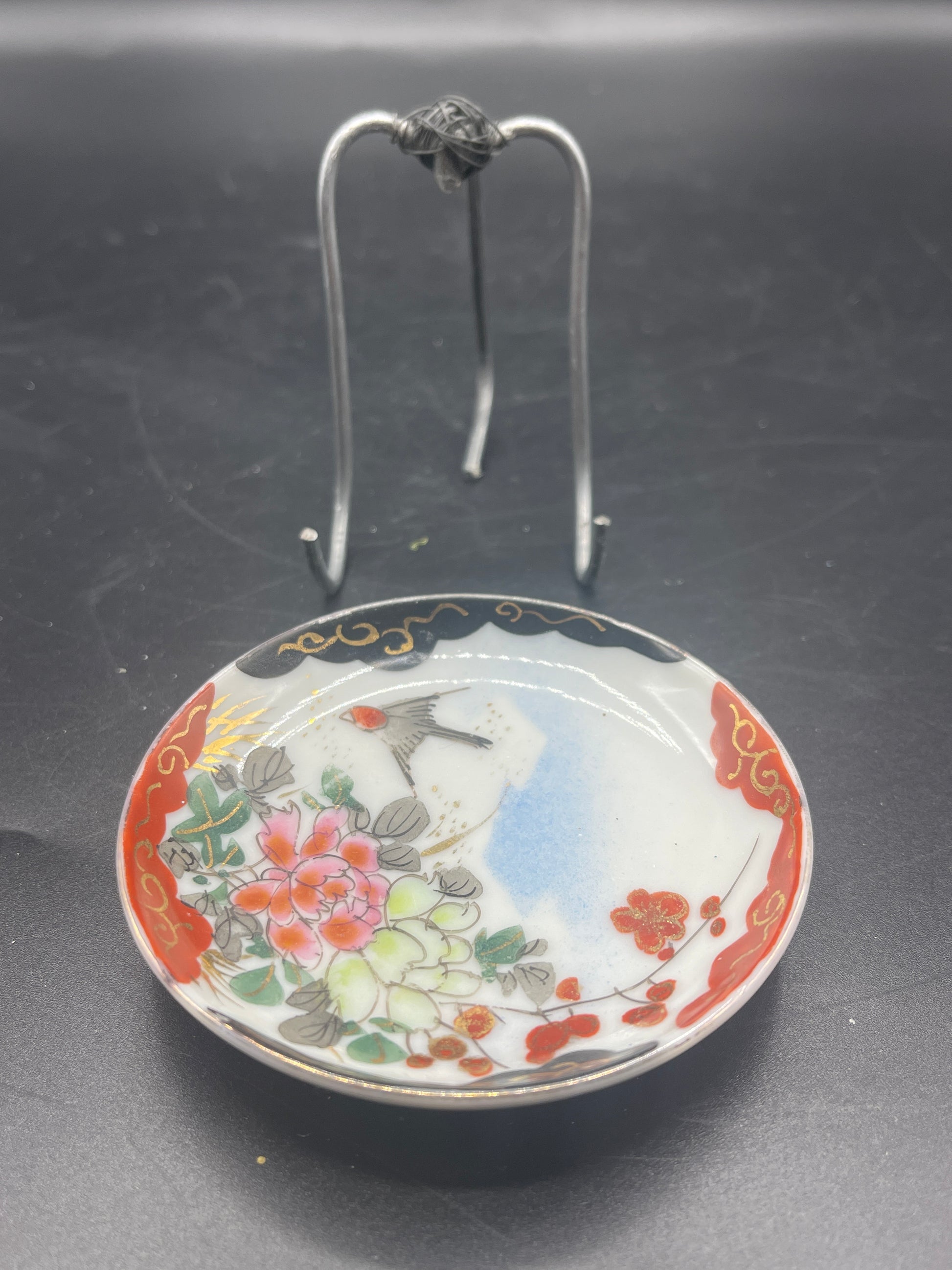 Vintage Hand Painted Asian Plate with Holder - 3"