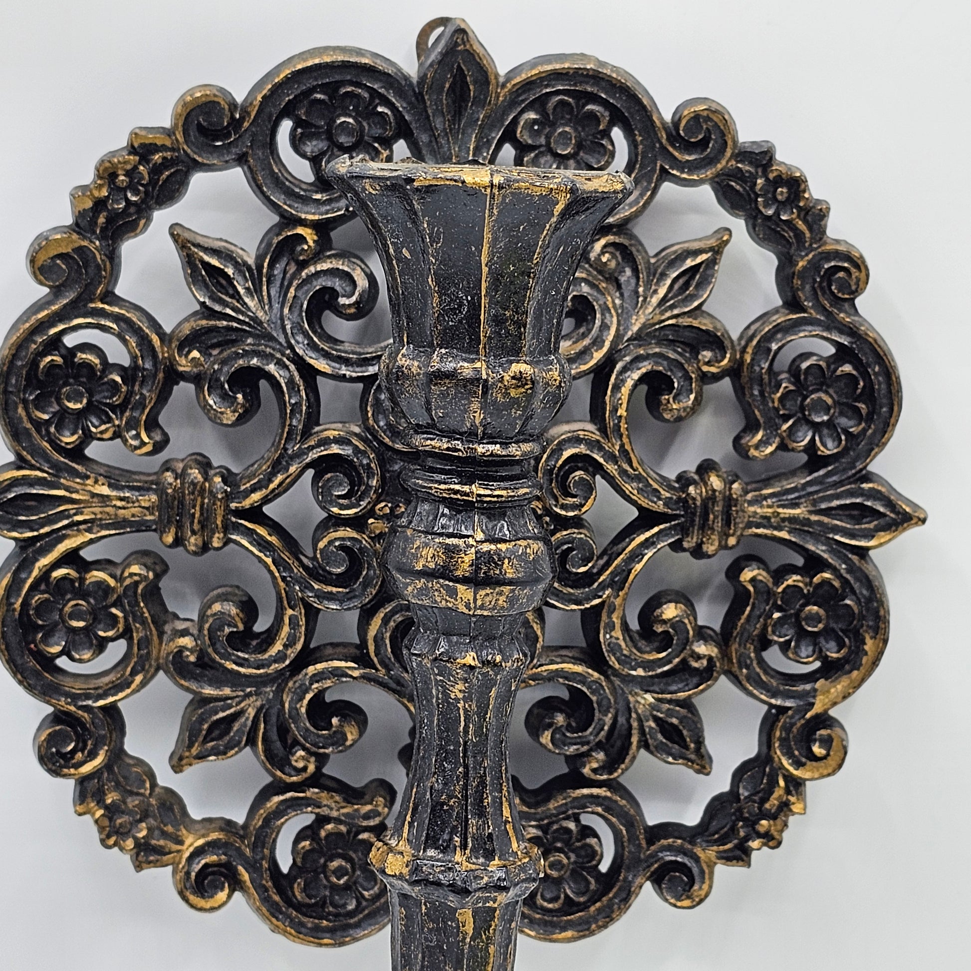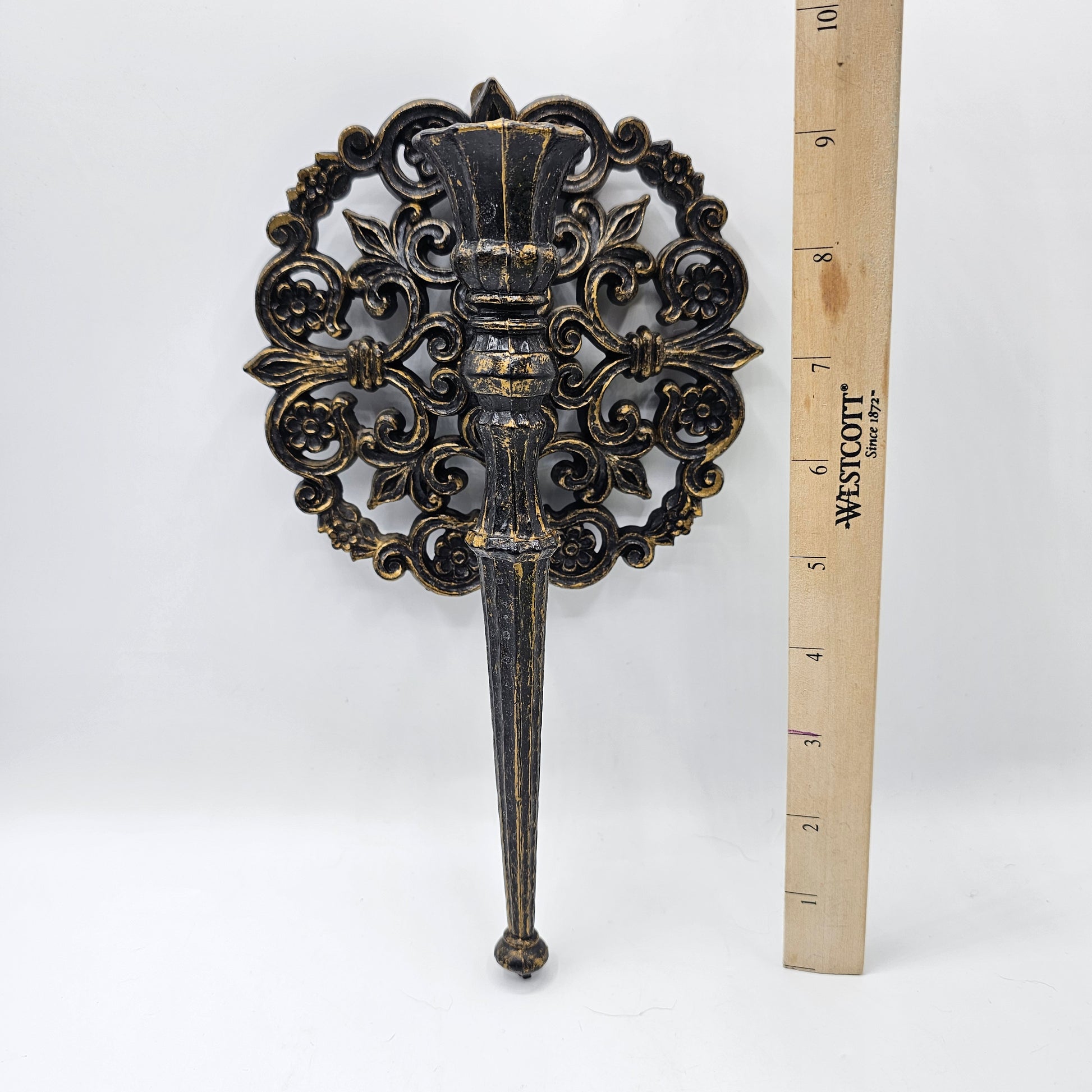 Vintage Homco/Home Interiors Taper Candle Holder Sconce - Burnished Gold Molded Plastic 4148 Made USA