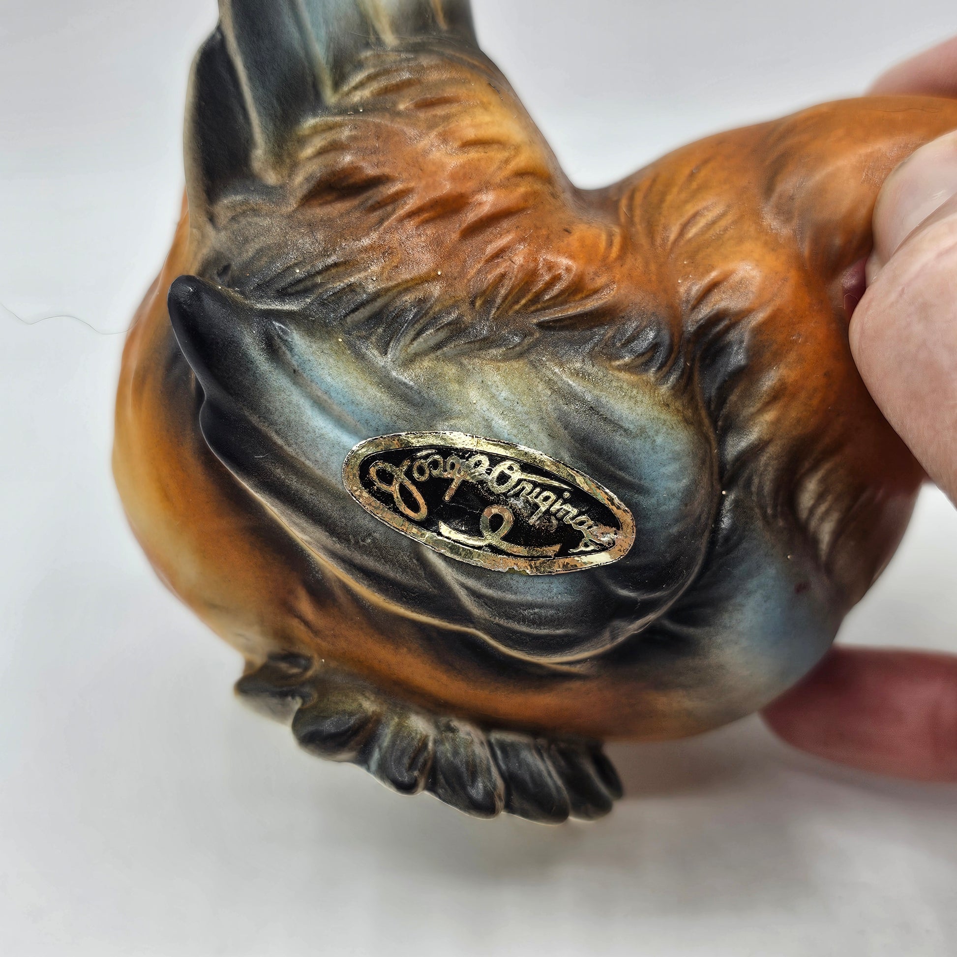 Crafted with expertise and attention to detail, this Vintage Josef Originals Porcelain Chicken Figurine adds a touch of elegance to any space. Made with fine porcelain, it showcases a delicate chicken figurine that exudes charm and grace. A timeless piece that will elevate your decor.