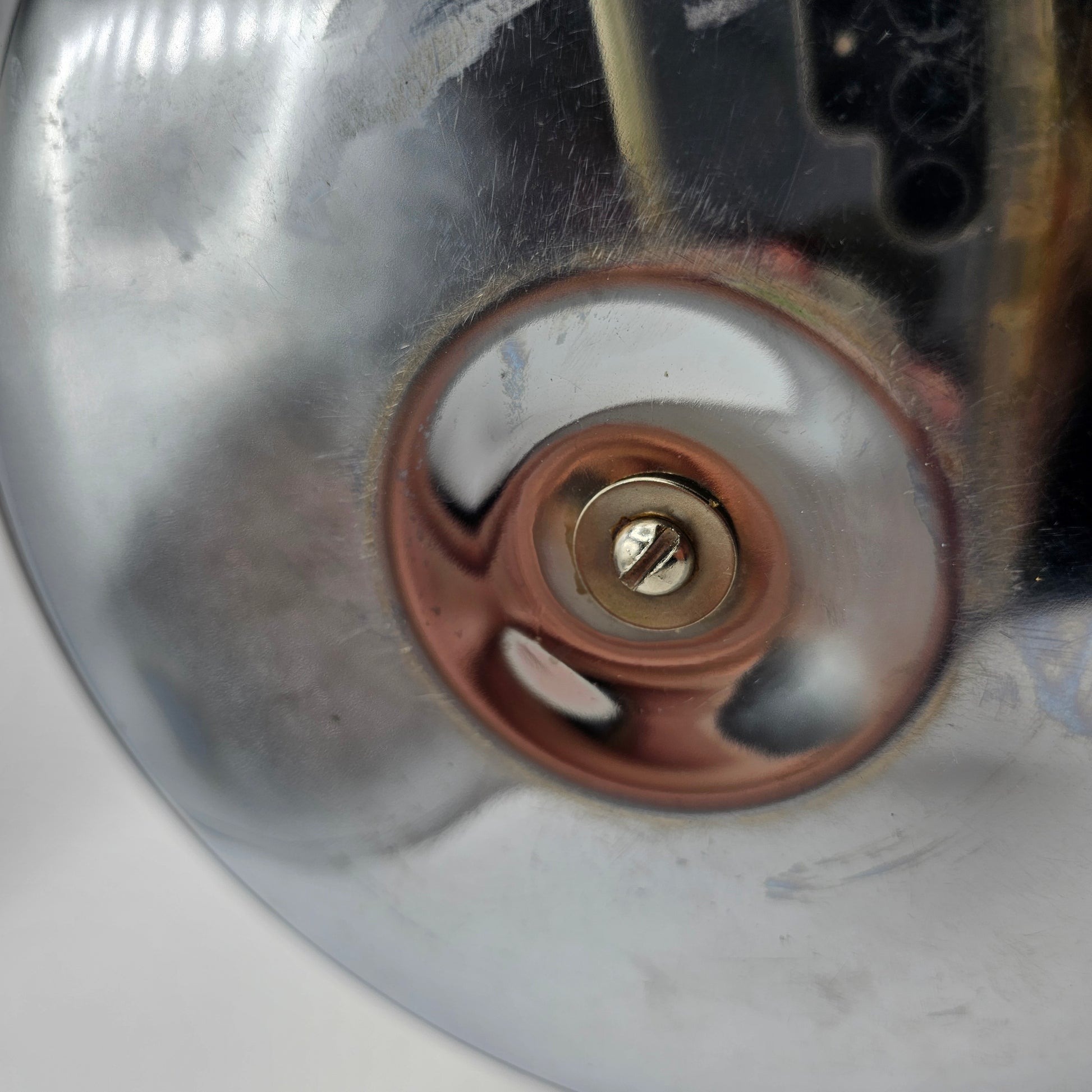 This Vintage Kromex Chrome Two Tiered Tidbit Tray or Bathroom Stand with Teak Wood Handle is a versatile and stylish addition to your home decor. Made with high-quality chrome and a beautiful teak wood handle, this tray can be used for serving snacks or as a bathroom stand for your toiletries. Its two tiers offer ample space and its durable construction ensures long-lasting use.