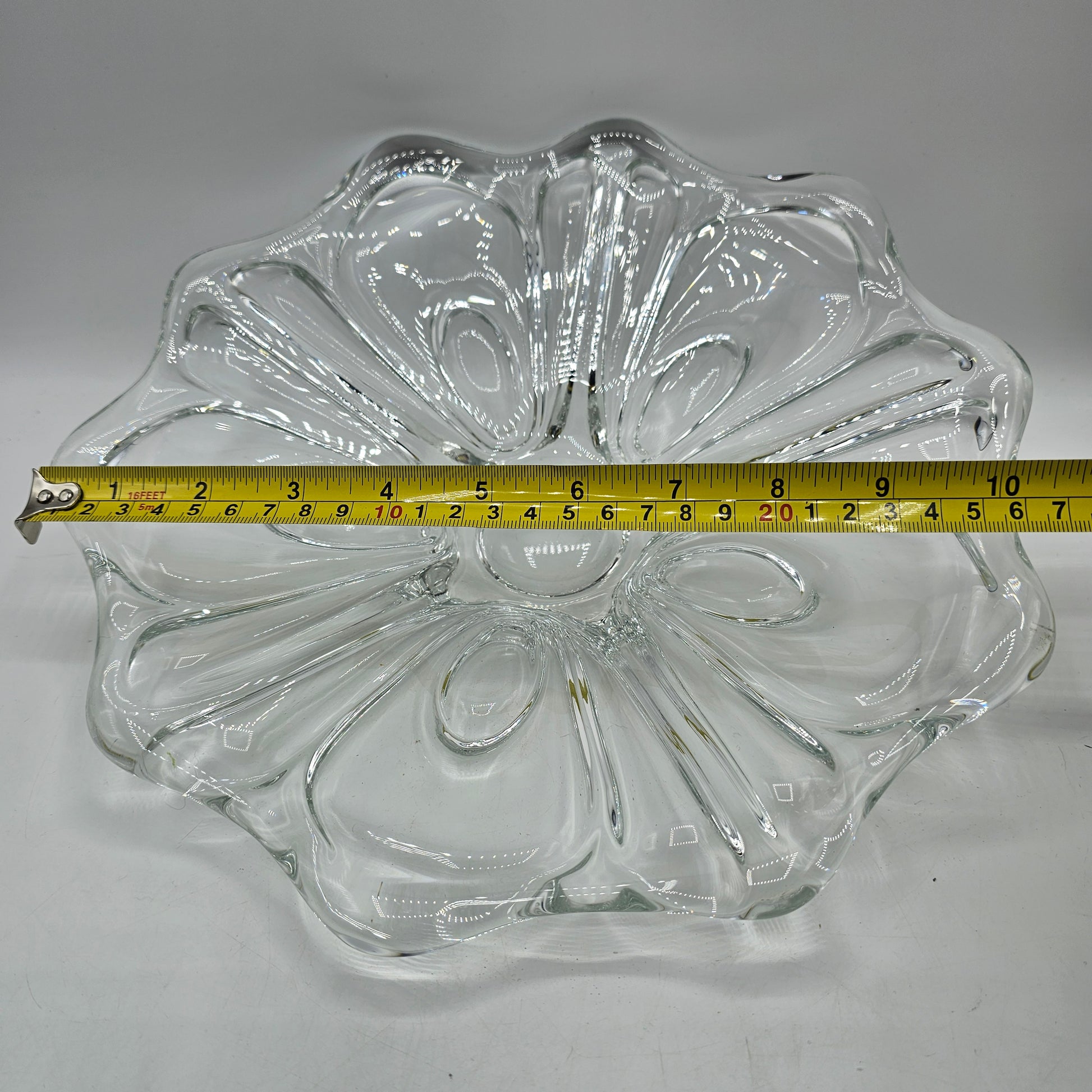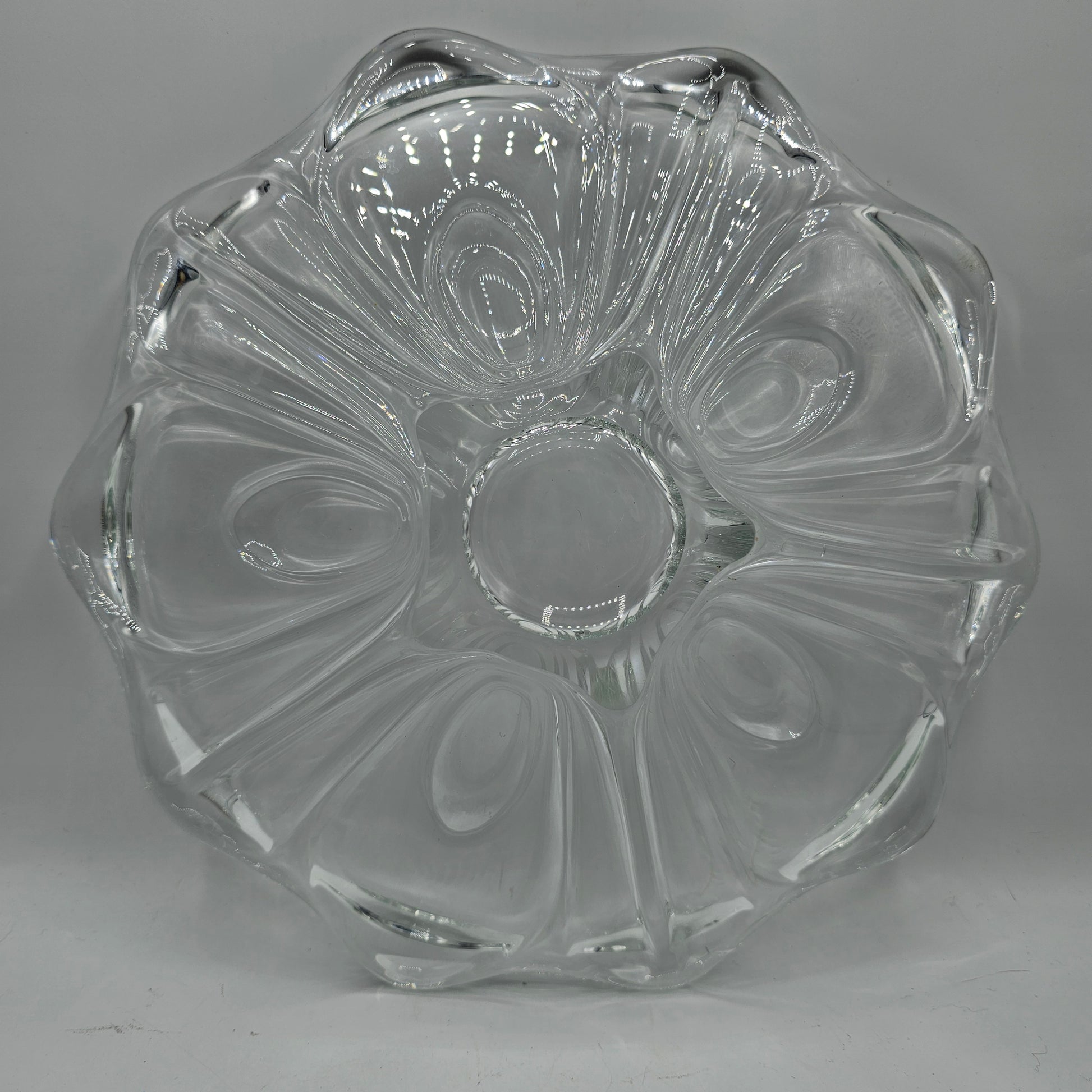 This vintage LUX glass serving bowl / platter is a timeless piece made in Austria. Designed with a bold floral pattern, it adds a touch of elegance to any dining experience. Crafted with high-quality glass, it is a durable and stylish addition to your serveware collection.