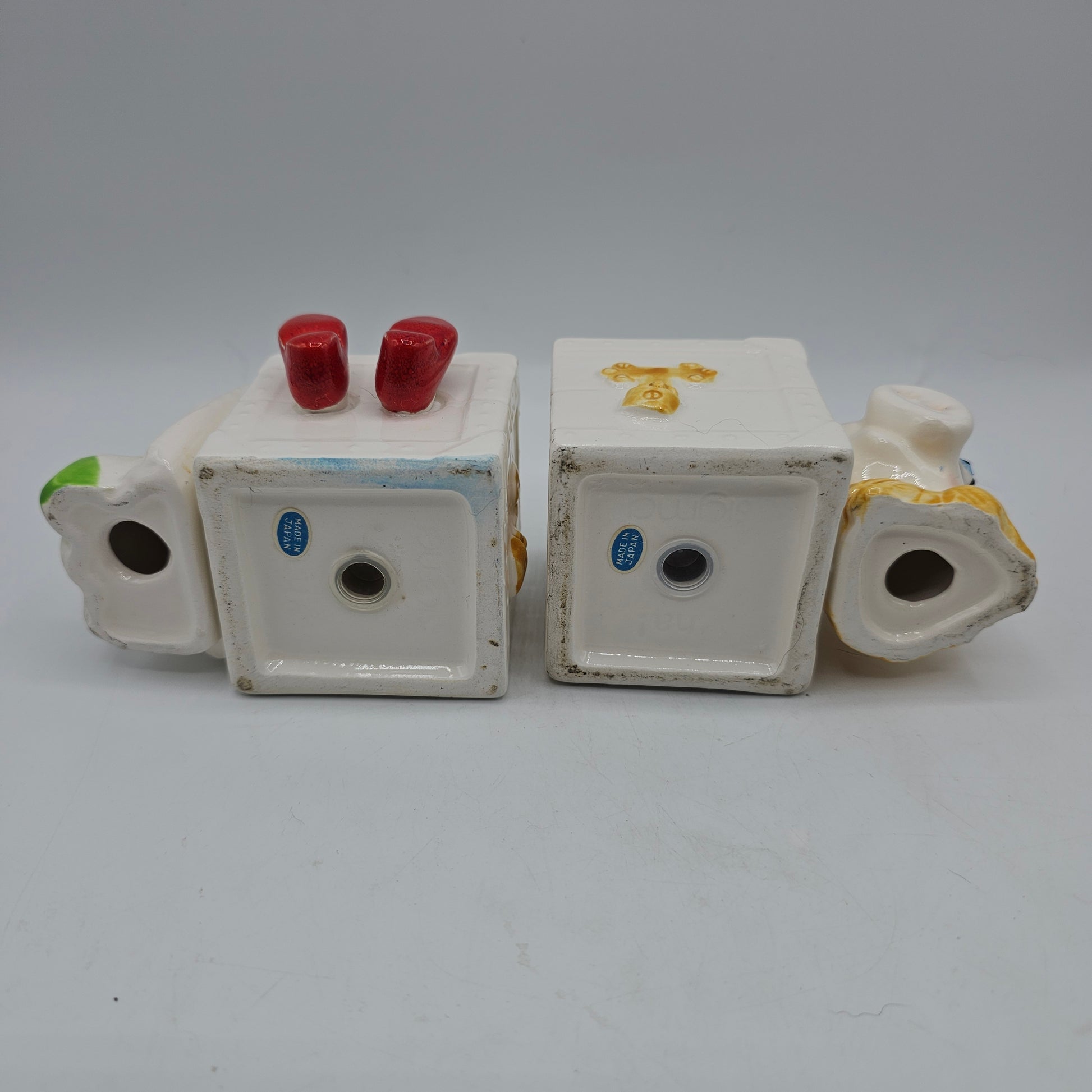 Vintage Muppets Kermit the Frog Magician Saws Miss Piggy - Sigma Porcelain Salt and Pepper Shakers Japan 1972