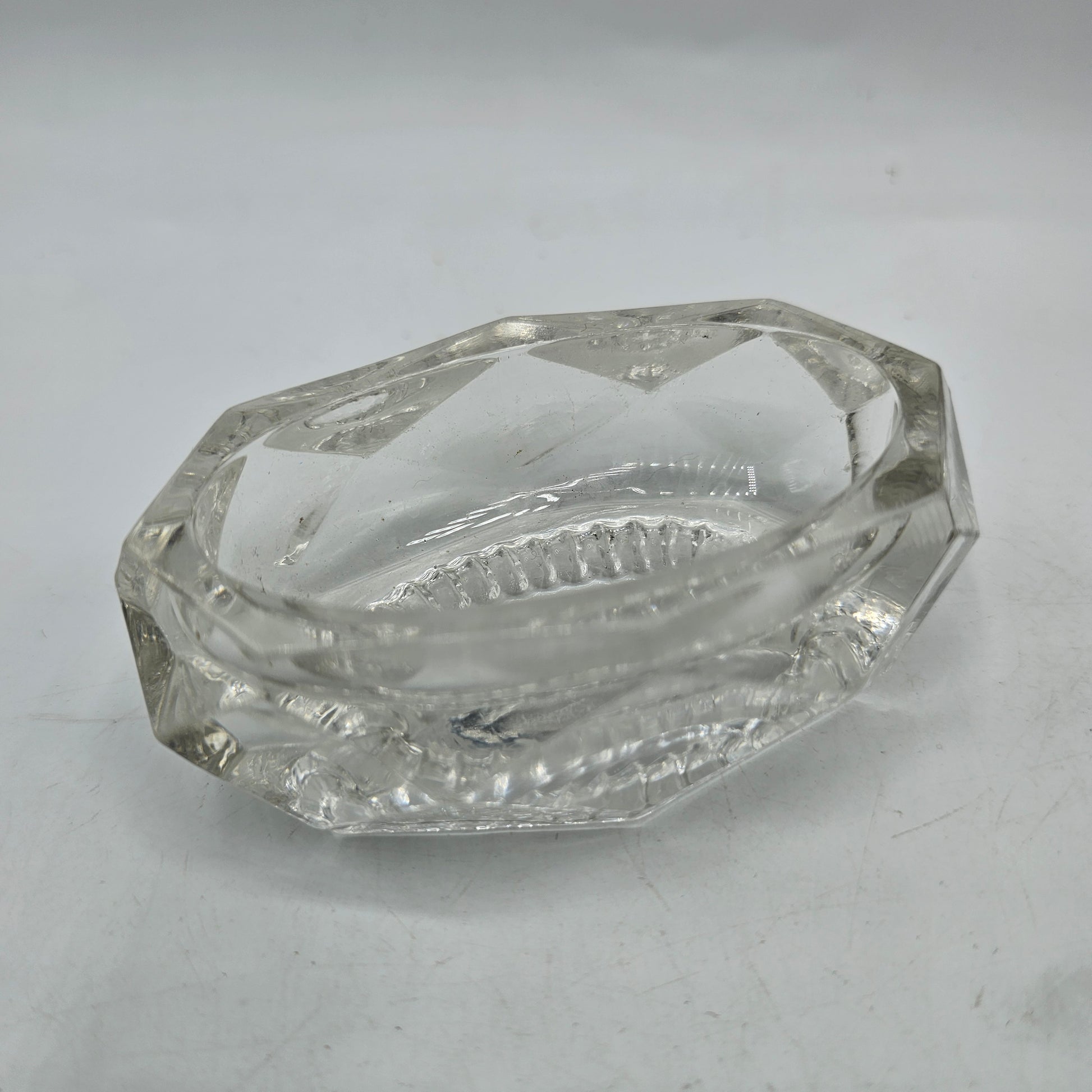 Expertly crafted from vintage oval faceted glass, this master salt dish adds a touch of elegance to any dining experience. Its unique design allows for easy access to salt, making it a practical and stylish addition to your table. Elevate your dining experience with this timeless piece.