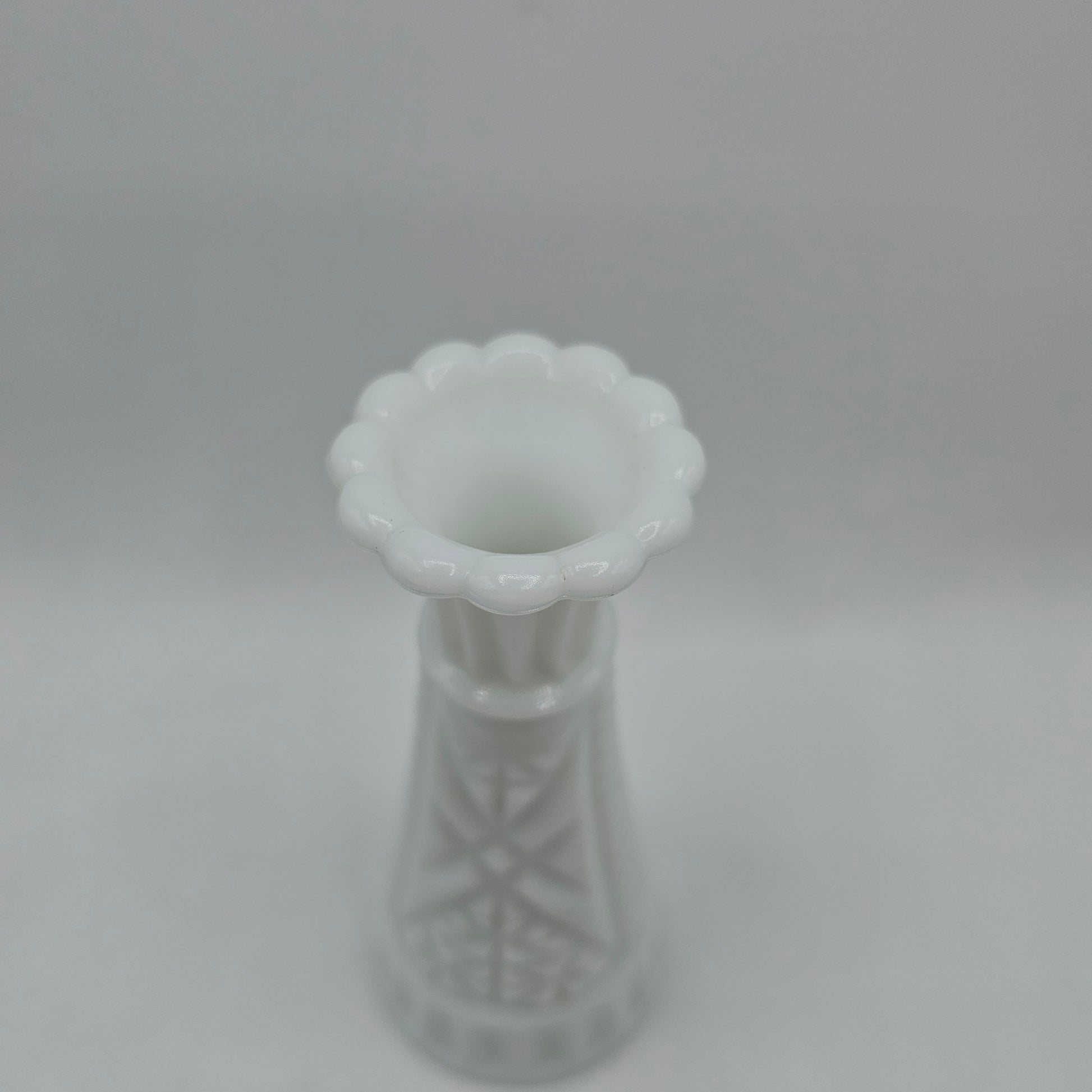 Expertly crafted with a vintage design, this milk glass vase features a unique petal top that adds elegance to any room. Made with high-quality materials, it is durable and perfect for showcasing your favorite flowers. Add a touch of timeless beauty to your home with this vintage vase.