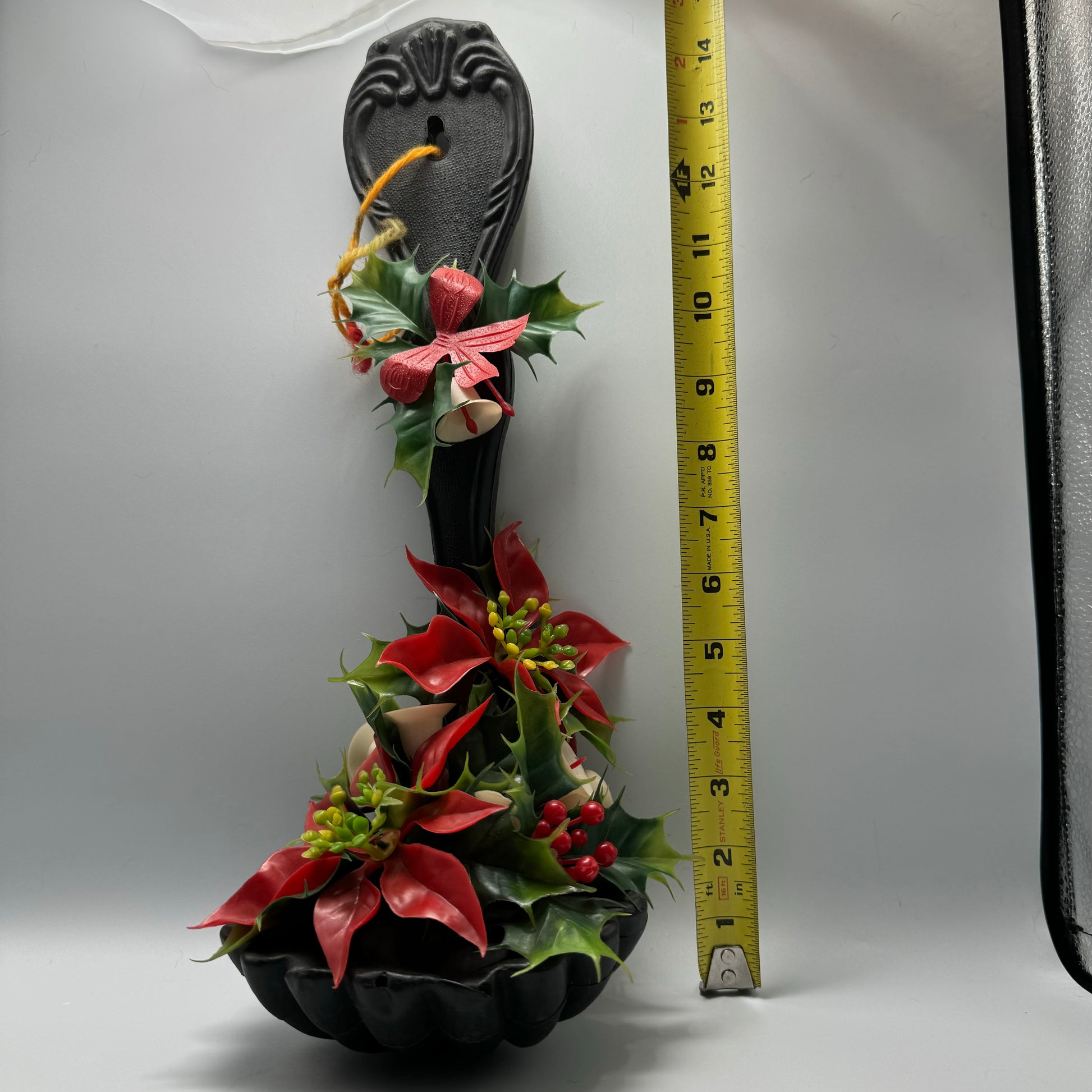 Vintage Plastic Christmas Ladle with Poinsettias and Holly