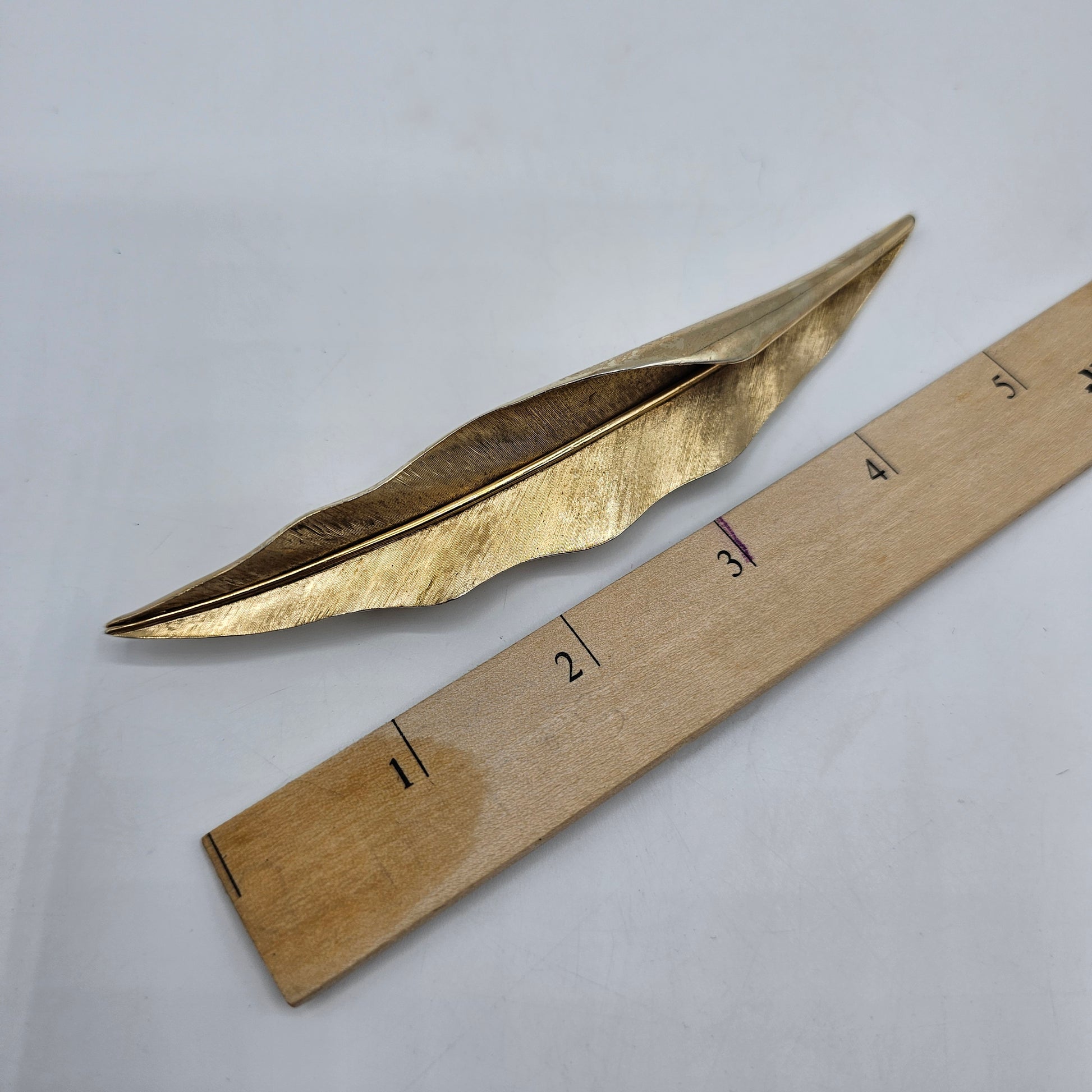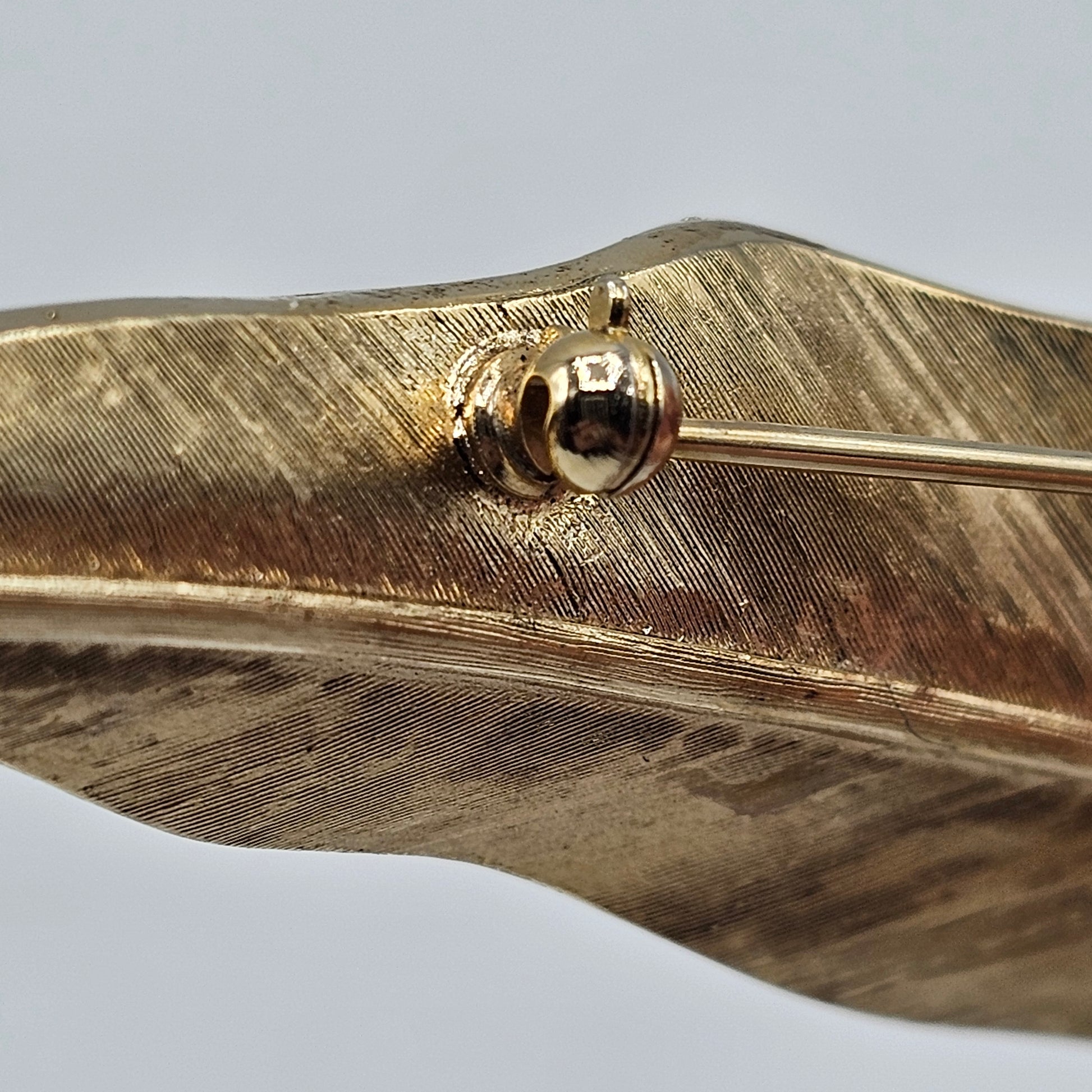 Vintage Signed Trifari Curled Leaf Gold Tone Pin Back Brooch